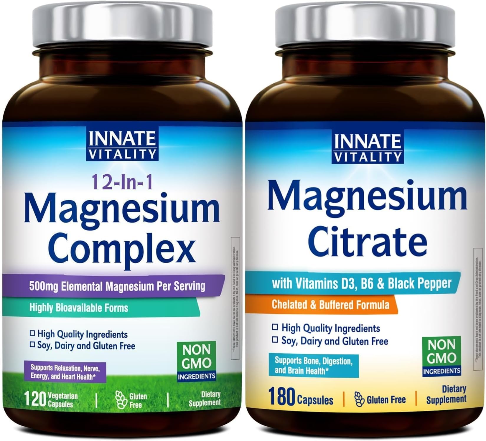 Innate Vitality Magnesium Supplement Bundle 12-in-1 Magnesium Complex (500mg Elemental) + Magnesium Citrate with Vitamin D3 & B6 Enhanced Absorption for Digestion Heart Bone & Brai