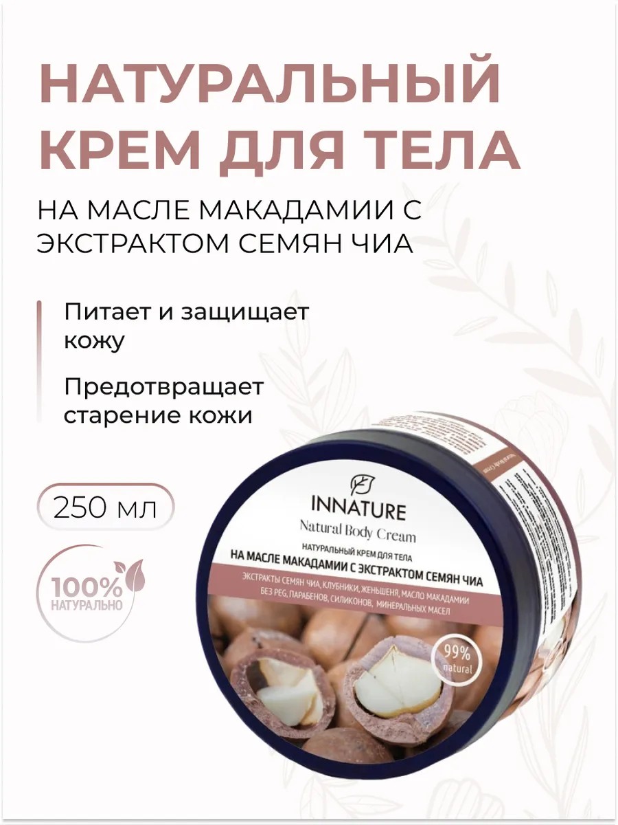 Натуральный крем для тела на масле макадамии с экстрактом семян чиа, 250 мл
