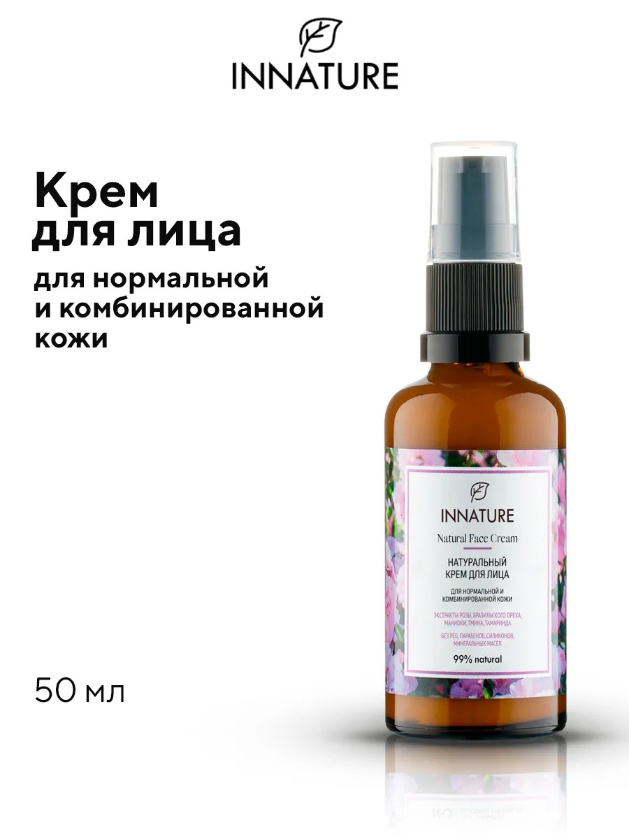 Натуральный крем для нормальной и комбинированной кожи лица интенсивно питает и увлажняет кожу, нормализует водный баланс, поддерживает тонус и эластичность кожи. Решает проблемы расширенных пор и жирного блеска в Т-зоне. Комплекс экстрактов розы, бразильского ореха, маниоки, тмина и тамаринда в составе увлажняет, питает и защищает нежную кожу лица. Д-пантенол защищает кожу от неблагоприятных факторов окружающей среды. Гель алоэ вера увлажняет, освежает и успокаивает кожу. Гиалуроновая кислота способствует удержанию влаги в коже, повышает ее эластичность. Крем можно использовать как базу под макияж. Натуральный крем для нормальной и комбинированной кожи лица INNATURE отличное решение для ухода за вашей кожей лица.