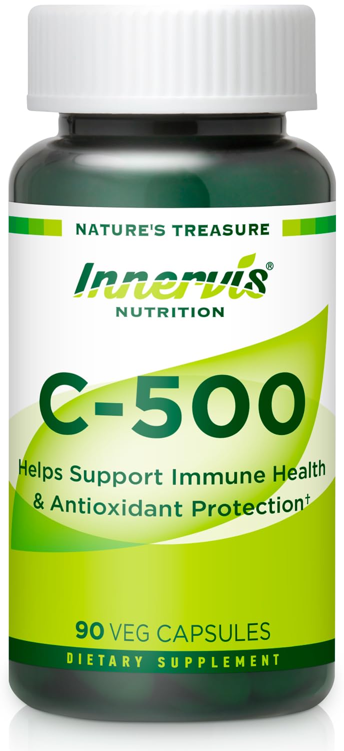 INNERVISNUTRITION C-500 Powerful Antioxidant Protection & Immune Health Vitamin C 500mg 90 Veg Capsules Daily Immunity and Wellness Support Supplement
