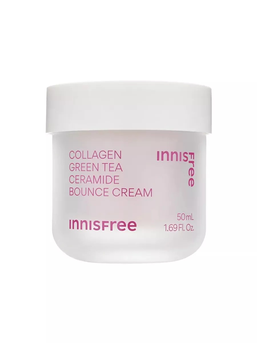 Крем с коллагеном и с экстрактом зеленого чая Innisfree Collagen Green Tea Ceramide Bounce Cream - удивительный увлажняющий крем, разработанный для укрепления и упругости кожи. Он содержит высококачественный коллаген и экстракт зеленого чая, которые помогают увлажнить и улучшить текстуру кожи, делая её более упругой и эластичной. Кроме того, керамиды в составе крема укрепляют защитный барьер кожи, предотвращая потерю влаги. Крем имеет легкую текстуру, хорошо впитывается и не оставляет жирной пленки. Он придает коже ощущение увлажненности, мягкости и свежести. Крем идеально подходит для ежедневного ухода за сухой, уставшей или увядающей кожей.