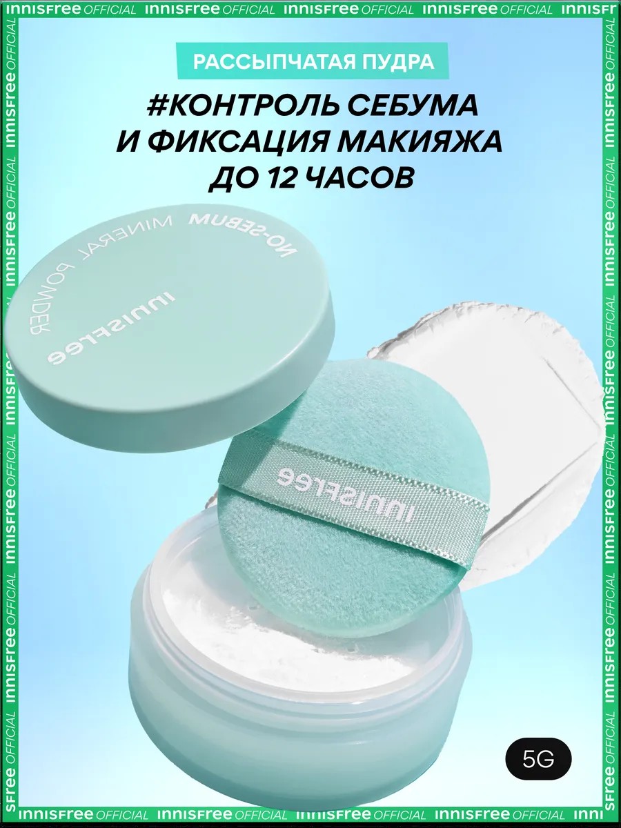 Матирующая минеральная пудра для лица INNISFREE идеально подходит для завершения макияжа.