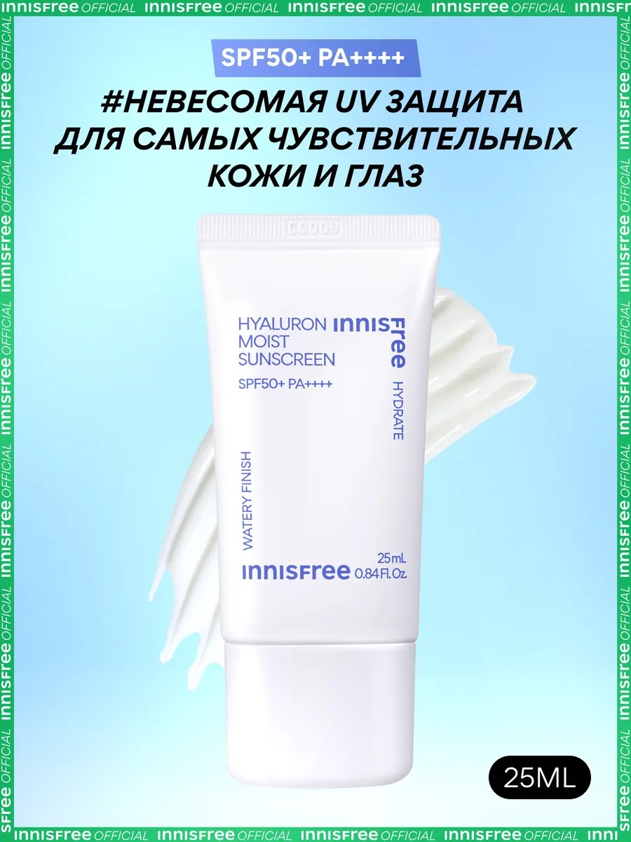 Солнцезащитные средства для лица — залог здоровой кожи. Удобная гиалуроновая косметика с SPF 50 — продукт, который можно использовать не только как защиту от ультрафиолета, но и как уходовую косметику для лица на каждый день. Солнцезащитная косметика содержит современные химические фильтры с доказанной исследованиями эффективностью. Гипоаллергенная формула эссенции для лица прошла множество тестов, в том числе на раздражение кожи и раздражение глаз. Увлажнение кожи происходит за счет гиалуроновой кислоты в составе средства. Это вещество способно «притягивать» к себе влагу в межклеточном пространстве, благодаря чему кожа становится напитанной, мягкой и сияющей. Увлажняющая эссенция для лица INNISFREE — уходовая косметика, которую можно наносить в несколько слоев в течение дня, и она не оставляет белого налета. Водная легчайшая текстура ровно ложится и дает прозрачный финиш. Наносите средство для увлажнения лица и тела каждый раз, когда выходите на солнце. Не забывайте обновлять его по мере необходимости.