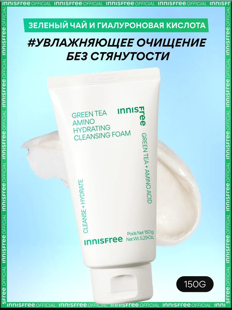 "Увлажненная кожа без ощущения стянутости после умывания с увлажняющей пенкой для умывания с экстрактом зеленого чая и аминокислотами. Синергия аминокислотного комплекса с увлажняющим действием, гиалуроновой кислоты и Beauty Green Tea, богатого высококонцентрированными аминокислотами, помогает коже оставаться увлажненной без ощущения стянутости после очищения, а мягкие и насыщенные амино-пузырьки удаляют загрязнения из пор и выравнивают водно-жировой баланс кожи.