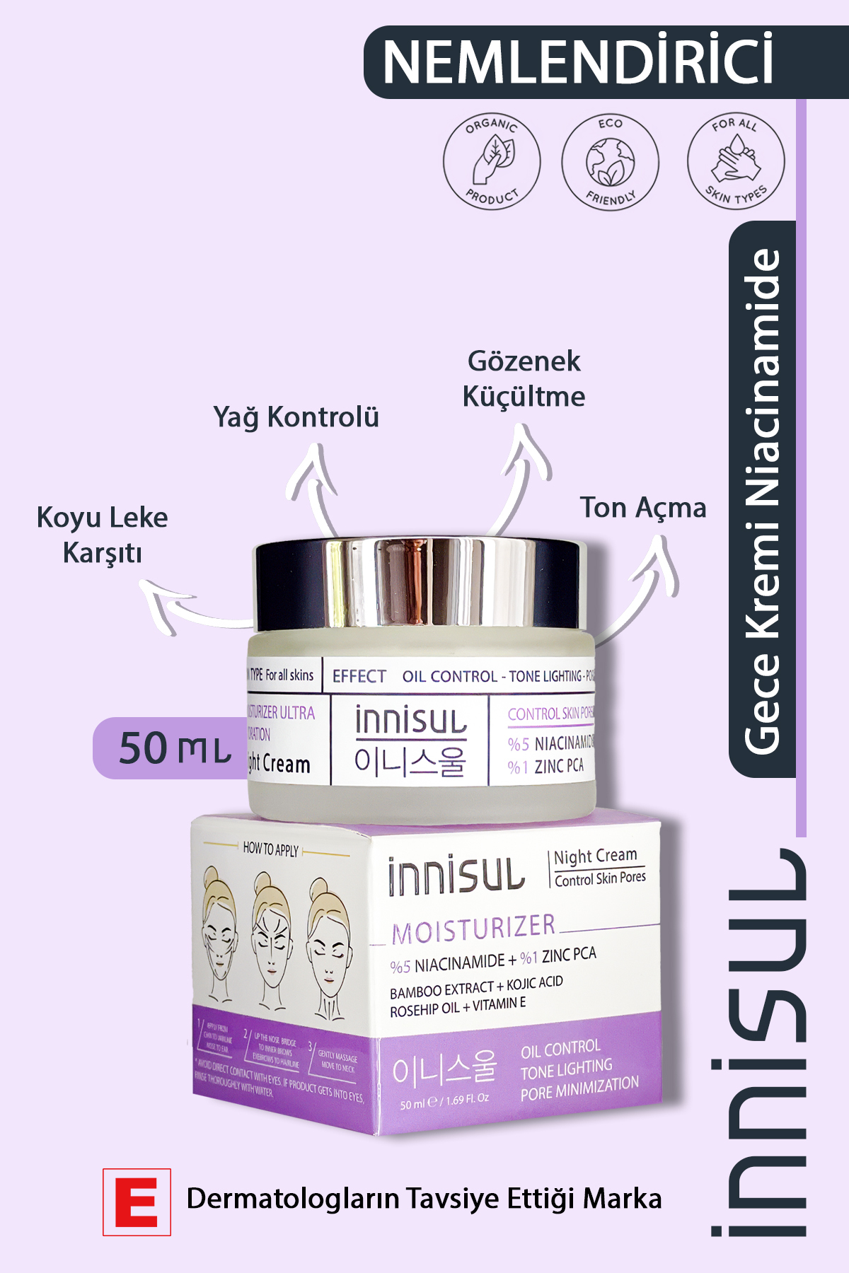Cildiniz için özel olarak tasarlanmis derinlemesine nemlendirici gece kremi!NiacinamideveZinciçeren özel formülü sayesinde cildinizi yogun bir sekilde nemlendirirken, () ve lekelere (leke) karsi etkili bir koruma saglar. Gözenekleri kontrol altina alarak daha pürüzsüz ve saglikli bir cilt görünümü sunar.