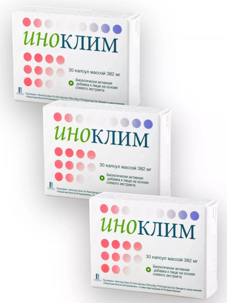 Inoklim is a dietary supplement based on soybean extract rich in two essential isoflavones: genistein and daidzin. While exhibiting an estrogen-like effect, isoflavones are free of the side effects of sex hormones used in hormone replacement therapy during menopause: they do not stimulate hyperplasia of the genital tract mucosa and do not lead to the development of hormone-dependent tumors.