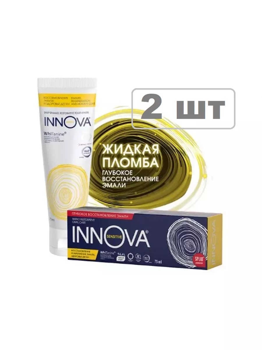 Innova Sensitive Зубная Паста Восст/здор Десен75мл. nnova sensitive зубная паста восстановление эмали и здоровье десен – это укрепляющая зубная паста с терапевтической дозировкой Гидроксиапатита (2,25%) в активной наноформе, действует подобно жидкой пломбе: проникает глубоко в открытые дентинные канальцы и полностью их закрывает, укрепляет эмаль, снижает чувствительность зубов, в том числе в пришеечной области, а также снижает кровоточивость и воспаление десен.