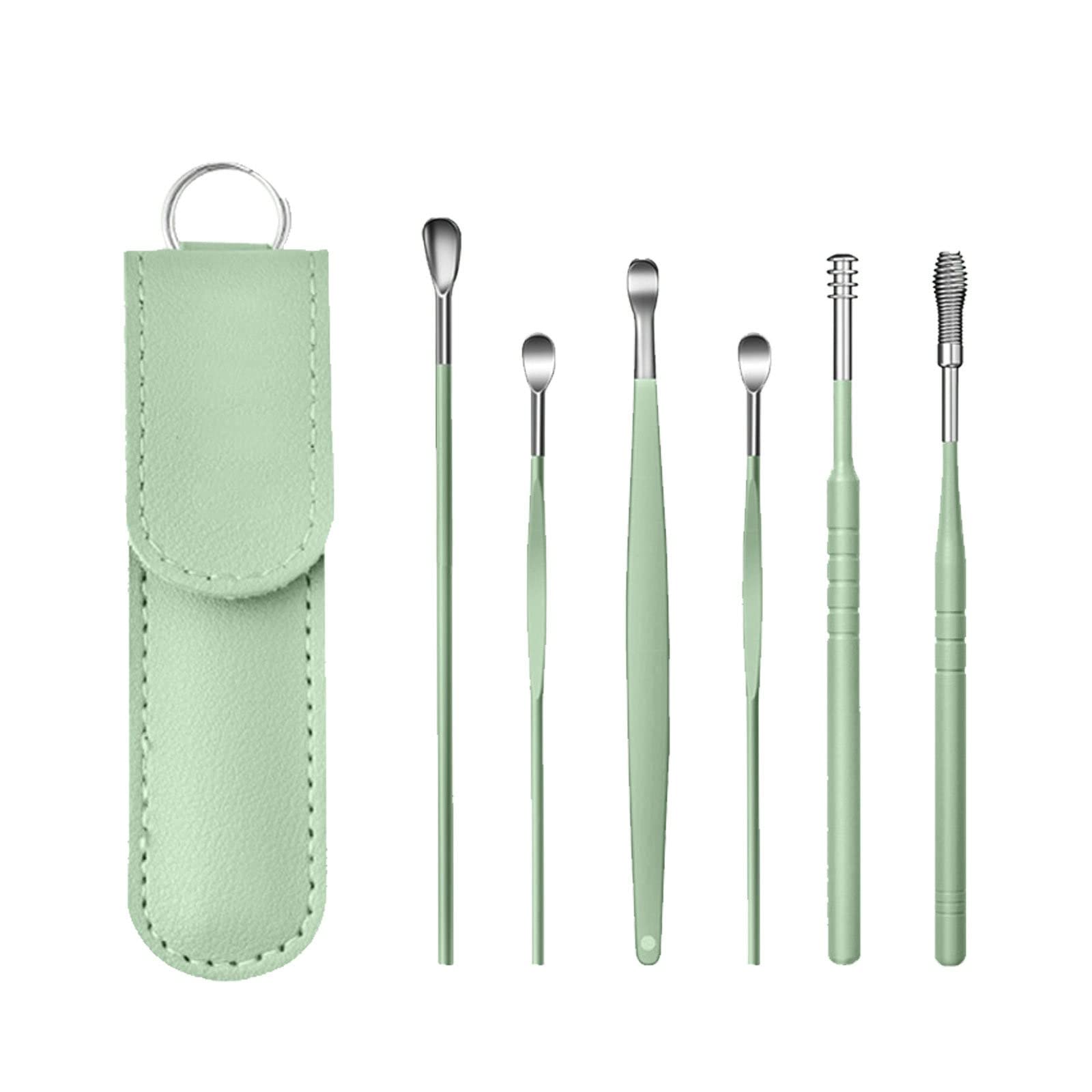 Innovative Spring Earwax Cleaner Tool Set 6Pcs 360 Spiral Design Earwax Removal Tools Ear Wax Removal Kit Ear Cleaning Kit With Storage Bag Face Stone One Size Green