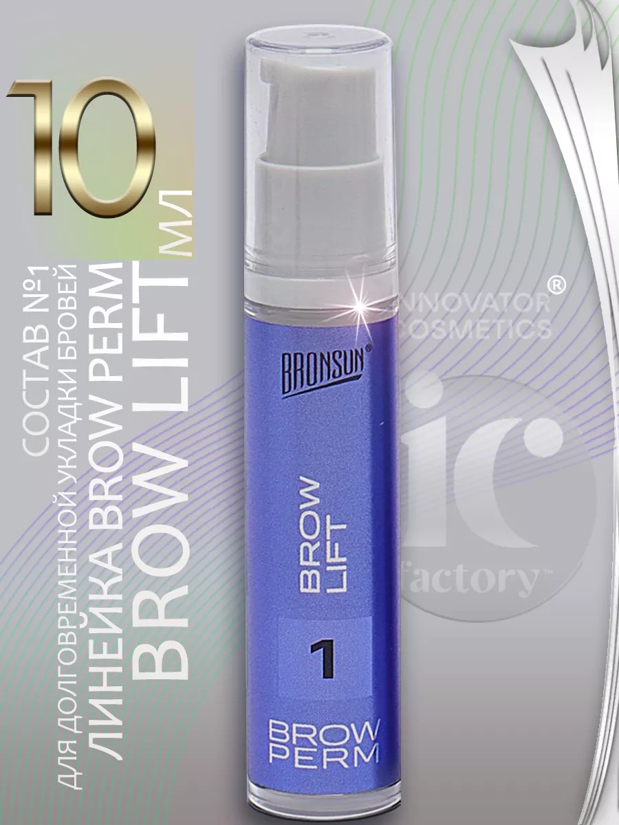 больше чем качественный продукт, это инструмент успеха для настоящих профессионалов! Чтобы стать классным специалистом, brow-мастеру нужно постоянно учиться новому и осваивать трендовые процедуры. Долговременная укладка обрела невероятную популярность. Она помогает скорректировать асимметрию бровей и придать им желаемую форму на долгий срок. С линейкой составов Броу Перм Бронсн долговременная укладка станет одной из самых востребованных услуг у любого мастера. Новый состав работает максимально быстро, поэтому процедура длится значительно меньше, чем обычно. Это позволяет бровистам повышать прайс на свои услуги, ведь время — ценный и дорогой ресурс. Секрет такого потрясающего результата кроется в цистеамине. Этот активный компонент очень быстро, эффективно, но при этом бережно воздействует на дисульфидные связи, не пересушивая брови. Экспресс-формула реструктурирует и укрепляет волоски, а уходовые компоненты в составе увлажняют и питают их. В итоге брови выглядят ухоженными, красивыми и яркими. Эффект от процедуры сохраняется до 12 недель! Благодаря удобным большим флаконам с дозатором состав экономично расходуются. У него долгий срок хранения и практически отсутствует неприятный запах — это еще одно достижение технологов Ай Си Фэктори.
