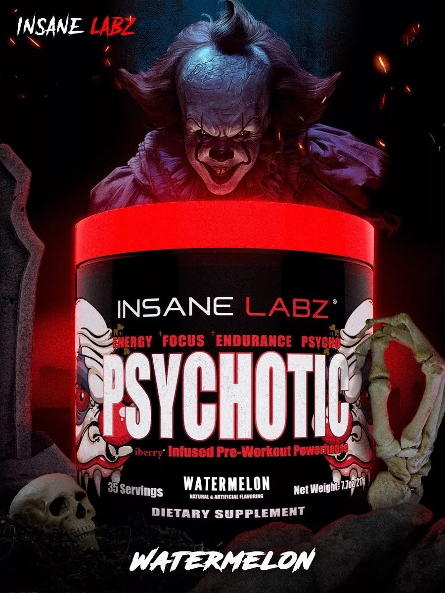 Insane Labs Psychotic Pre-Workout Complex - delivers a powerful surge of energy, focus, and euphoria for 3 hours. Forget Mesamorph and Devcon, Psychotic Pre-Workout is now your favorite psycho pre-workout. Blow your mind, feel the fury of a workout madness in the gym, pump iron! Use only for true psychos, gym fanatics. Feel like you're on a course without a course :) Effects of Psychotic Pre-Workout: Powerful energy boost; Concentration and mental clarity; Increased performance; Improved mood and euphoria; Duration of action up to 3 hours! Beta alanine is a muscle stimulant that prolongs training and increases the number of sets and reps. Increases muscle carnosine concentration, which buffers lactic acid. Promotes increased sensitivity of calcium channels, which improves muscle contractility. Creatine Monohydrate is a true natural anabolic! Instantly increases pumps, endurance, and strength, with a cumulative effect. Caffeine is a sports energy drink, a strength booster, and the most popular central nervous system stimulant. It boosts metabolism and provides a long-lasting energy supply. AMPiberry is a patented blend of juniper berries and yeast. It has anti-inflammatory, antioxidant, and analgesic effects, and has an anabolic effect. rb-methylphenylethylamine is a nervous system stimulant without side effects! It induces a feeling of satiety and mild euphoria, and boosts metabolism. DMAE improves mood, while the complex improves attention and memory. Hordenine is a sports fat-burning component whose effect is achieved through central nervous system stimulation and norepinephrine production. It prepares the body for training and energy expenditure by burning fat. Devil's Venom Extract—specifically Resprin—has a calming effect on the nervous system. Relieves anxiety, improves mental clarity, and normalizes blood pressure. Huperzine improves cognitive function.