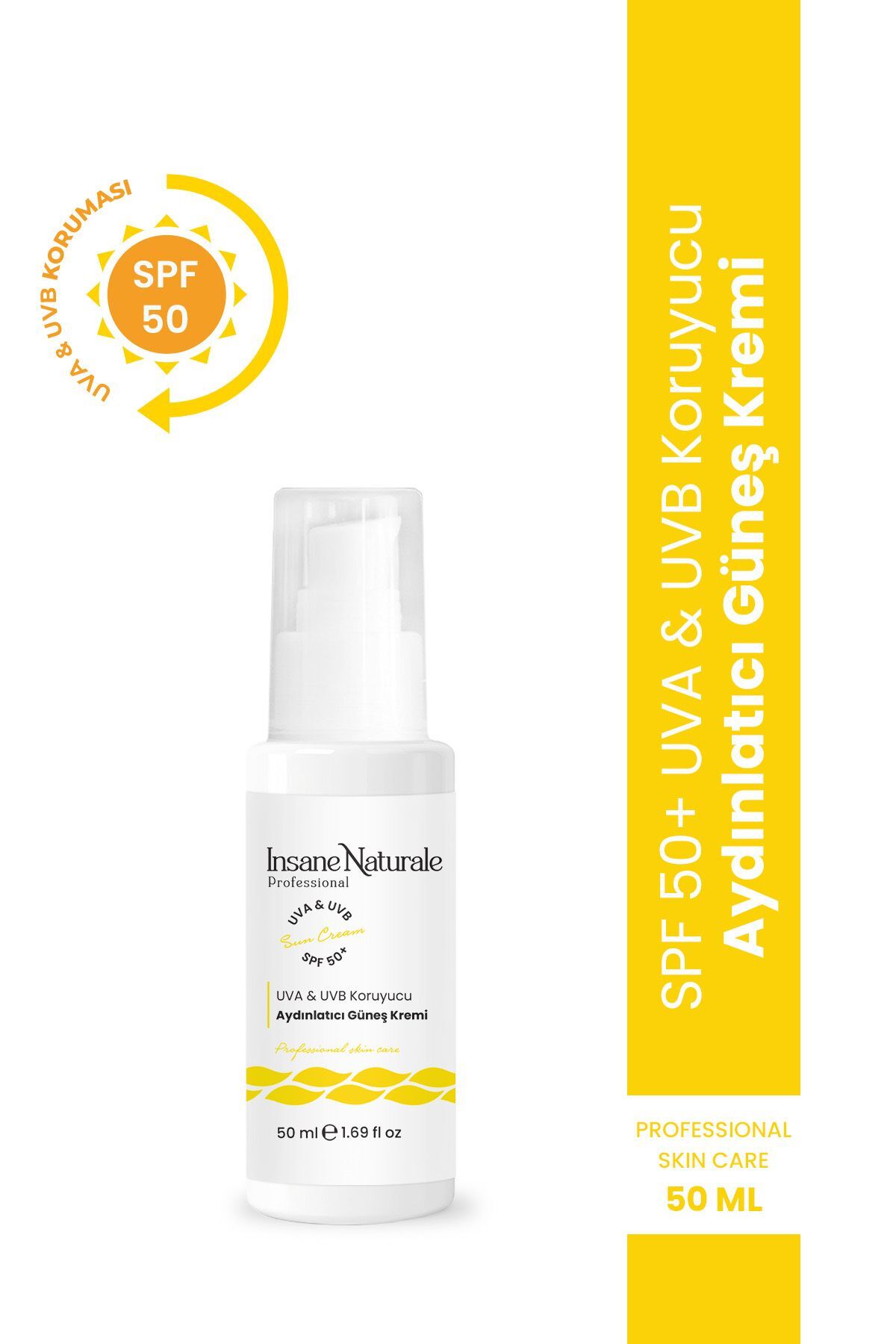 Insane Naturale Brightening Sun Cream - Spf 50 UVA & UVB Protective Sun Cream 50 ml