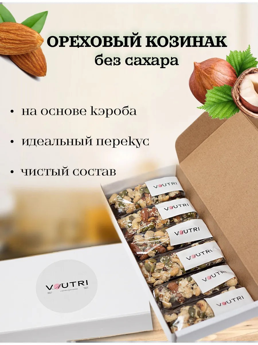 | Состав | фундук; миндаль; арахис; кешью; семена тыквы; кунжут; изомальт; какао масло; кэроб |