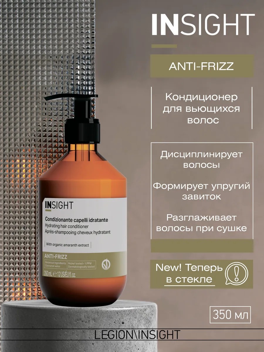 Insight Anti-Frizz - Кондиционер для дисциплины непослушных и вьющихся волос (350 мл) — это профессиональное средство, созданное для укрощения непослушных и вьющихся волос, обеспечивая им гладкость, контроль и легкость в укладке. Этот кондиционер идеально подходит для тех, кто стремится добиться идеального результата и сохранить волосы в порядке, независимо от погодных условий.