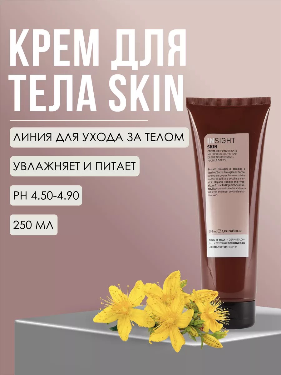 Skin Nourishing Профессиональная косметика: Крем питательный для ухода за кожей тела, Италия. 250 мл. Insight Skin Nourishing Body Cream - Крем питательный для тела - с богатой смесью активных ингредиентов и эмульгаторов природного происхождения делает этот крем идеальным продуктом для питания кожи и улучшает ее эластичность. Кожа становится более подтянутой и бархатистой. Крем для тела INSIGHT предназначен для глубокого увлажнения и питания кожи. Наносится после душа и дарит ощущение нежности на весь день. В составе продукта итальянской марки ИНСАЙТ более чем 98 процентов натуральных компонентов. Органическое масло каритэ питает, сохраняет влагу, делает кожу мягкой и гладкой. Экстракт ройбуша улучшает ее тонус. Экстракт зверобоя стимулирует защитные функции, предотвращает появление раздражений, успокаивает. INSIGHT Nourishing Body Cream протестирован дерматологами, которые подтвердили его безопасность даже для чувствительной и реактивной кожи. Не вызывает аллергии. Обладает ненавязчивым ароматом. Способ применения: Наносить на кожу тела, массажными движениями втирать до полного впитывания. Идеально на подарок маме, подруге и любимой, коллеге на день рождения, 8 марта, Новый год, День Святого Валентина. Рекомендуем использовать в комплексе с профессиональной серией уходовой косметики для волос Insight / Инсайт.