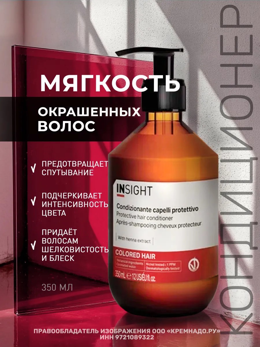 Инсайт кондиционер для окрашенных волос, 350 мл. Защитный комплекс для окрашенных волос от Insight Colored Hair. Insight Professional - это деликатная формула и органический состав. Профессиональный кондиционер для волос Инсайт - это формула, специально разработана для сохранения цвета и здоровья, масло манго питает волосы без эффекта утяжеления. Масло макадамии защищает от внешних воздействий. Экстракт хны подчеркивает интенсивность цвета, придает шелковистость и сияние, масло виноградных косточек защищает от воздействия свободных радикалов. Эта линия гарантирует сияние и оживление окрашенных волос. Для наилучшего результата рекомендуем использовать в комплексе с другими продуктами серии:- Инсайт Шампунь для окрашенных волос, Инсайт Маска для окрашенных волос Colored Hair. Данное средство косметическое для волос профессиональное - отличное решение. Insight кондиционер предотвращает спутывание волос, не утяжеляет, поддерживает интенсивность пигментов окрашенных волос, замедляя вымывание цвета. Благодаря органическим формулам, профессиональная косметика для волос INSIGHT безопасна и эффективна.В каждом стеклянном флаконе уходовой косметики вы найдете максимум натуральных ингредиентов, которые подарят вашей коже головы и волосам несравненный уход и мягкую защиту. Прочное стекло надежно защищает натуральную косметику от воздействия солнечных лучей, сохраняя все полезные свойства активных ингредиентов на длительное время.