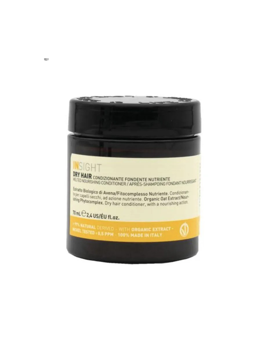 Nourishing Conditioner INSIGHT DRY HAIR 70 мл – профессиональный тающий кондиционер итальянского производства, разработанный для ухода за сухими волосами. Средство обладает увлажняющим эффектом, питает волосы без утяжеления, делая их мягкими и сияющими. Обогащен маслами, которые смчгчают волос, возвращают им жизненную силу, защищает волосы от повреждений и делает их гладкими и послушными. Уровень pH 3.50-4.50 обеспечивая комфортный и деликатный уход для обезвоженных волос. Средство без сульфатов, парабенов и SLS подходит для ежедневного использования. Рекомендуется использовать вместе с шампунем из этой же серии для достижения наилучших результатов. Это не только уход, но и прекрасный подарок для жены, подруги, девушки на день рождения, 8 марта, День матери или любой другой праздник. Выберите косметику Инсайт для здоровья и красоты ваших волос!