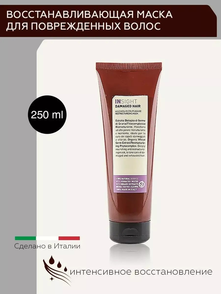 Восстанавливающая реструктурирующая маска для волос объемом 250 мл Damaged Hair Restructurizing итальянского бренда Insight глубоко питает и восстанавливает волосы, подходит для ухода за поврежденными и ломкими волосами. Благодаря инновационной формуле, богатой жирными кислотами и витаминами, профессиональная маска проникает в стержень волоса и гарантирует его глубокое восстановление и укрепление. Экстракт пророщенных семян пшеницы, масла арганы и оливы питают и восстанавливают волосы. Рисовые протеины добавляют силу и крепость по всей длине.