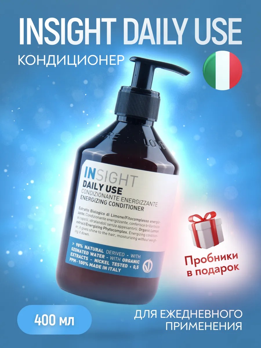 ENERGIZING CONDITIONER INSIGHT DAILY USE 400 мл – профессиональный кондиционер итальянского производства, разработанный для ухода за всеми типами волос. Средство обладает лёгким увлажняющим эффектом, питает волосы без утяжеления, делая их мягкими, шелковистыми и сияющими. Обогащена натуральными растительными маслами, которые восстанавливают структуру волос, а фруктовые кислоты возвращают им жизненную силу, защищает волосы от повреждений и делает их гладкими и послушными. Уровень pH 3.50–4.50 способствует поддержанию естественного баланса волос и кожи головы, обеспечивая комфортный и деликатный уход. Средство без сульфатов, парабенов и SLS подходит для ежедневного использования. Рекомендуется использовать вместе с шампунем из этой же серии для достижения наилучших результатов. Это не только уход, но и прекрасный подарок для жены, подруги, девушки на день рождения, 8 марта, День матери или любой другой праздник. Выберите косметику Инсайт для здоровья и красоты ваших волос!
