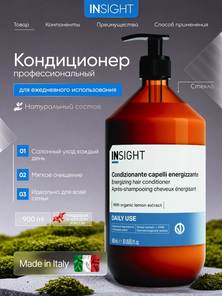 Кондиционер для волос ежедневного использования INSIGHT DAILY USE 900 мл - это инновационный продукт, который обеспечивает максимальный уход и защиту для ваших волос. Он был специально разработан для того, чтобы обеспечить наибольшую питательную и увлажняющую поддержку каждый день, делая ваши волосы более мягкими, блестящими и здоровыми.