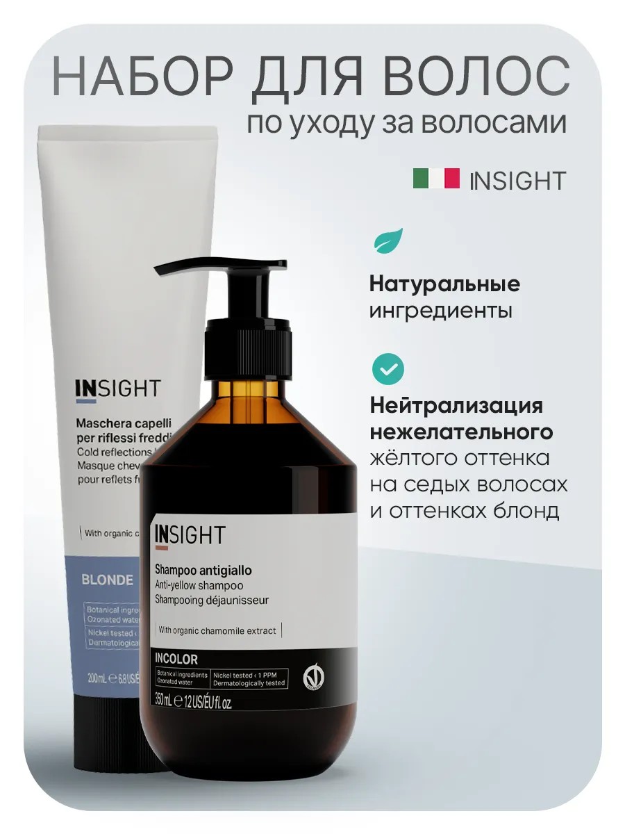 | Комплектация | Профессиональный шампунь INSIGHT INCOLOR 400 мл. - 1 шт.; Профессиональная маска INSIGHT BLONDE 250 мл. - 1 шт. |