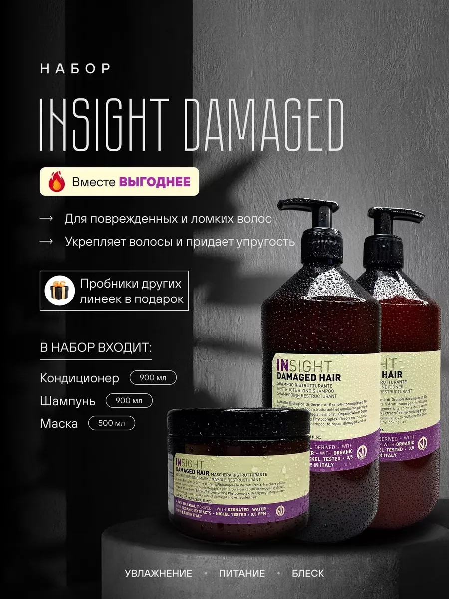 The set of professional cosmetics Insight Damaged Hair is suitable for daily use, makes hair thick and easier to comb.