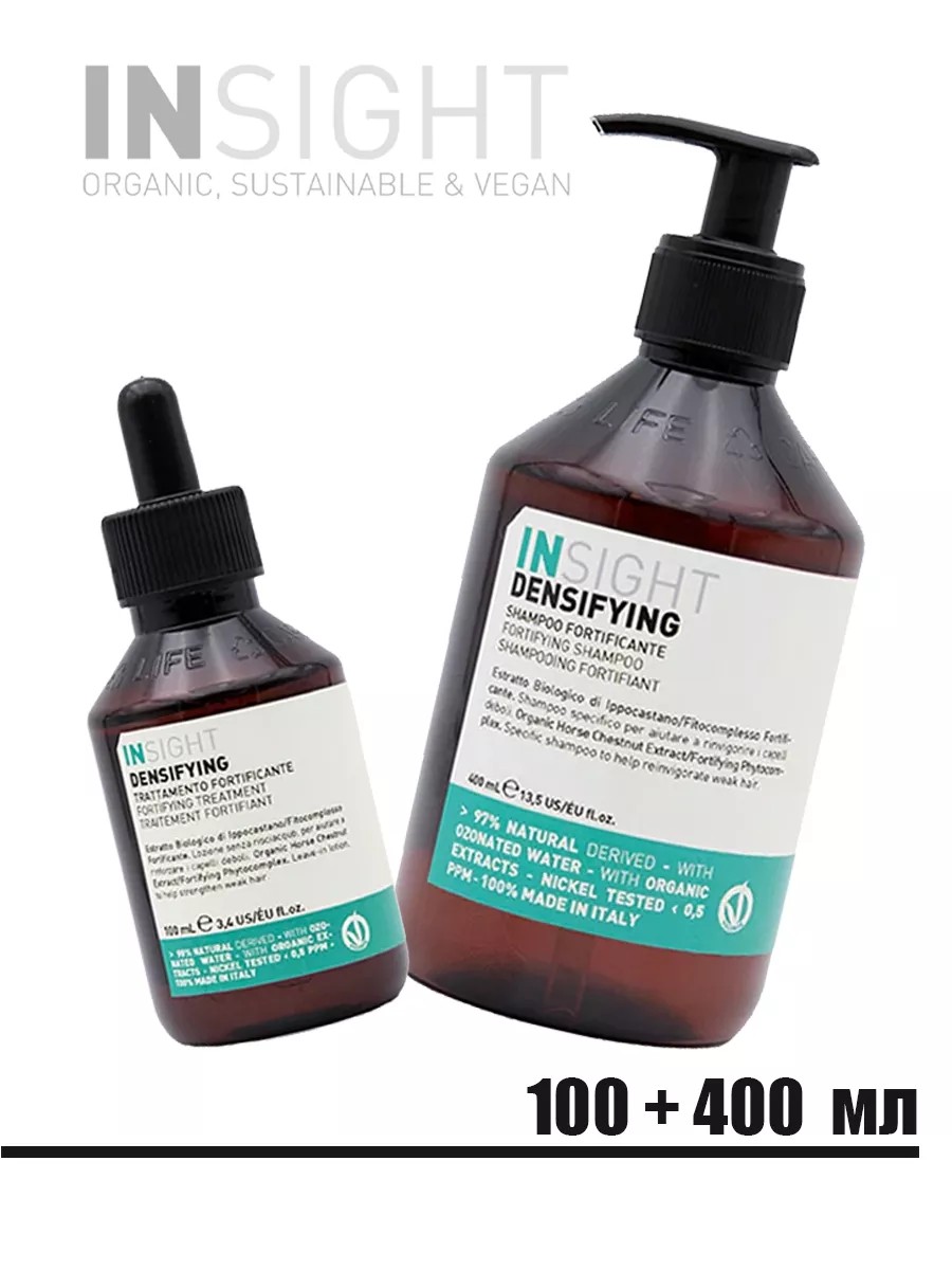 Набор для волос Insight Professional Loss Control / Densifying против выпадения волос оригинальный от итальянского производителя. Шампунь Insight Предотвращает выпадение волос. Благодаря действию активных компонентов укрепляет и стимулирует работу волосяной луковицы. Преимущества: Убирает неприятный зуд и дискомфорт на коже, успокаивая и освежая ее. Применение: Нанести на влажные волосы, распределить по всей длине. Тщательно смыть. Ингредиенты: Органический экстракт конского каштана укрепляет, обладает противовоспалительным действием. Укрепляющий комплекс (ментол, экстракт гуараны, органический экстракт эхинацеи) заряжает энергией, бодрит, стимулирует. Лосьон против выпадения волос предотвращает выпадение волос, придавая им плотность. Преимущества: Активно стимулирует микроциркуляцию и укрепление волосяной луковицы. Применение: После использования Укрепляющего шампуня нанести массажными движениями на кожу головы. Для более выраженного эффекта, наносить ежедневно или как минимум 3 раза в неделю, в течение 2-3 недель. Для предупреждающего или поддерживающего ухода применять дважды в неделю, в течение 5-6 недель. Не смывать! Ингредиенты: Органический экстракт конского каштана укрепляет, обладает противовоспалительным действием. Укрепляющий комплекс (ментол, экстракт гуараны, органический экстракт эхинацеи) заряжает энергией, бодрит, стимулирует.