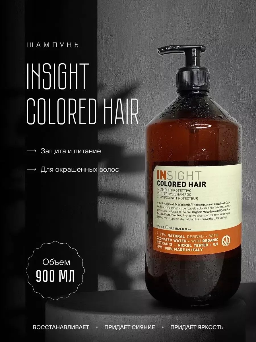 Профессиональный итальянский шампунь Insight Colored Hair создан для ухода за окрашеными волосами.