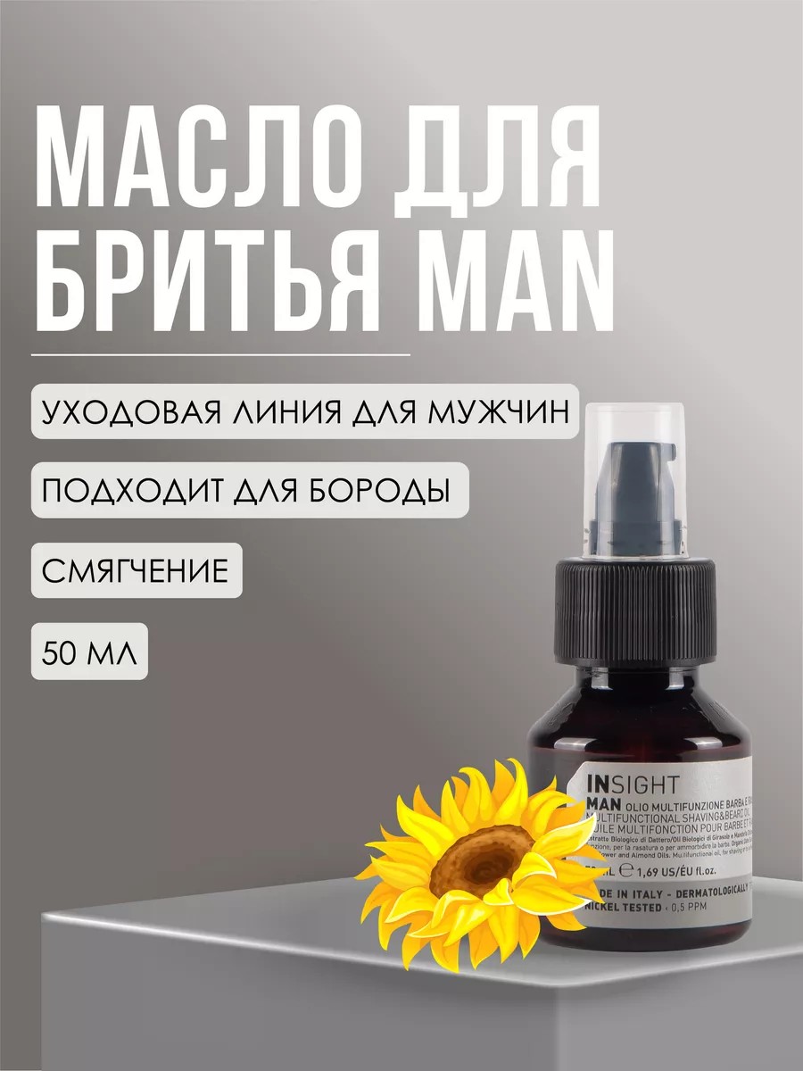 Man Профессиональная косметика: Многофункциональное масло для бритья и бороды, Италия. 50 мл. Масло многофункциональное Insight Man для бритья и ухода за бородой. Продукт с двойной функцией, который может быть использован, чтобы смягчить кожу и бороду, делая бритье проще, или как питательное масло для распутывания бороды. В дополнение к органическому экстракту финика, содержит: органическое масло подсолнечника и органическое масло сладкого миндаля. Multifunction Beard And Shaving Oil это многофункциональное средство, которое может использоваться для бритья или ухода за бородой и усами. Содержит натуральные компоненты, которые облегчают скольжение бритвы и одновременно обладают ухаживающим эффектом. Масла сладкого миндаля и подсолнуха смягчают, питают, придают блеск, облегчают укладку. Экстракт финика в составе средства итальянского бренда ИНСАЙТ укрепляет структуру волос, делает их более послушными. Масло для бритья и бороды INSIGHT выпускается в удобном флаконе с дозатором. Благодаря такой упаковке легко наносится в нужном количестве и экономично расходуется. Способ применения: Нанесите несколько капель на лицо перед бритьем для подготовки волос к процедуре и предотвращения раздражения. Как уход за бородой, нанесите несколько капель на руки, распределите массажными движениями на бороду и усы, для придания питания и блеск. Идеально на подарок папе, другу, парню, любимому и коллеге на день рождения, 23 февраля, Новый год, День Святого Валентина. Рекомендуем использовать в комплексе с профессиональной серией уходовой косметики для волос и тела Insight / Инсайт.