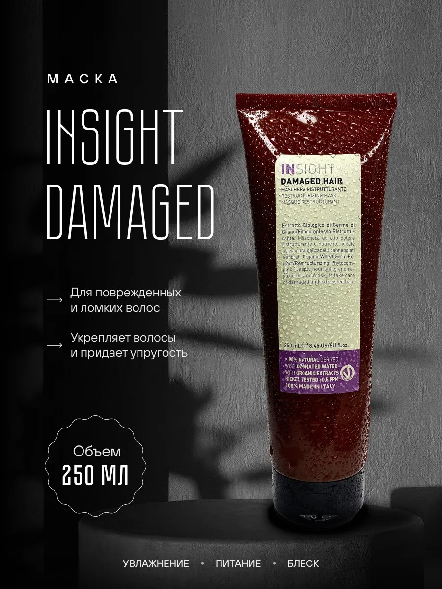 Реструктурирующая маска Insight damager hair создана для восстановления повреждённых и ломких волос. Благодаря её формуле, богатой жирными кислотами и витаминами, маска проникает в стержень волоса и гарантирует его глубокое восстановление и укрепление. Экстракт пророщенных семян пшеницы, масла арганы и оливы питают и восстанавливают волосы. Рисовые протеины добавляют силу и крепость. Для наилучшего результата рекомендуем использовать в комплексе с другими продуктами серии: шампунь для восстановления поврежденных волос damager hair, кондиционер для восстановления поврежденных волос damager hair. Наносить на влажные волосы, массажными движениями распределить по всей длине. Время воздействия 5-10 минут. Тщательно смыть водой. Маска Insight damager hair была создана с целью максимального питания сухих, ломких, пушащихся, тусклых волос без утяжеления. Восстанавливающий уход укрепляет тонкие и ломкие волосы, придавая эластичность, объем и мягкость проникая в глубокие слои волоса. Маска обладает питательными свойствами, гарантирует глубокое восстановление волокна волос, укрепляет и улучшает их общее состояние. Волосы становятся более мягкими, от корней до кончиков, эластичными и блестящим. Способ применения: Нанесите средство на влажные волосы, равномерно распределите по всей длине, тщательно смойте водой. Итальянский Бренд Insight (Инсайт) представляет маску для волос Insight damager hair для ежедневного применения.Ежедневное использование профессиональной маски для волос инсайт поможет укрепить и увлажнить их, предотвратить ломкость и сечение кончиков. В маске содержаться такие компоненты, которые предотвращают выпадение волос и стимулируют рост. Маску нужно наносить на влажные волосы, распределяя по всей длине, и оставлять на несколько минут, затем смыть уплотняющую распаривающую маску теплой водой. Регулярное использование маски поможет сохранить здоровье и красоту волос на долгое время.