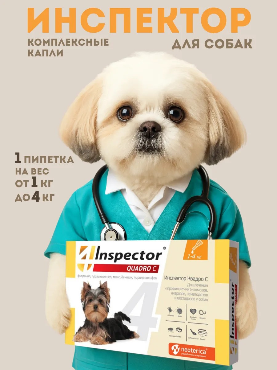 | Полное наименование товара | Инспектор Квадро С для собак 1-4 кг, капли на холку, № 1 |