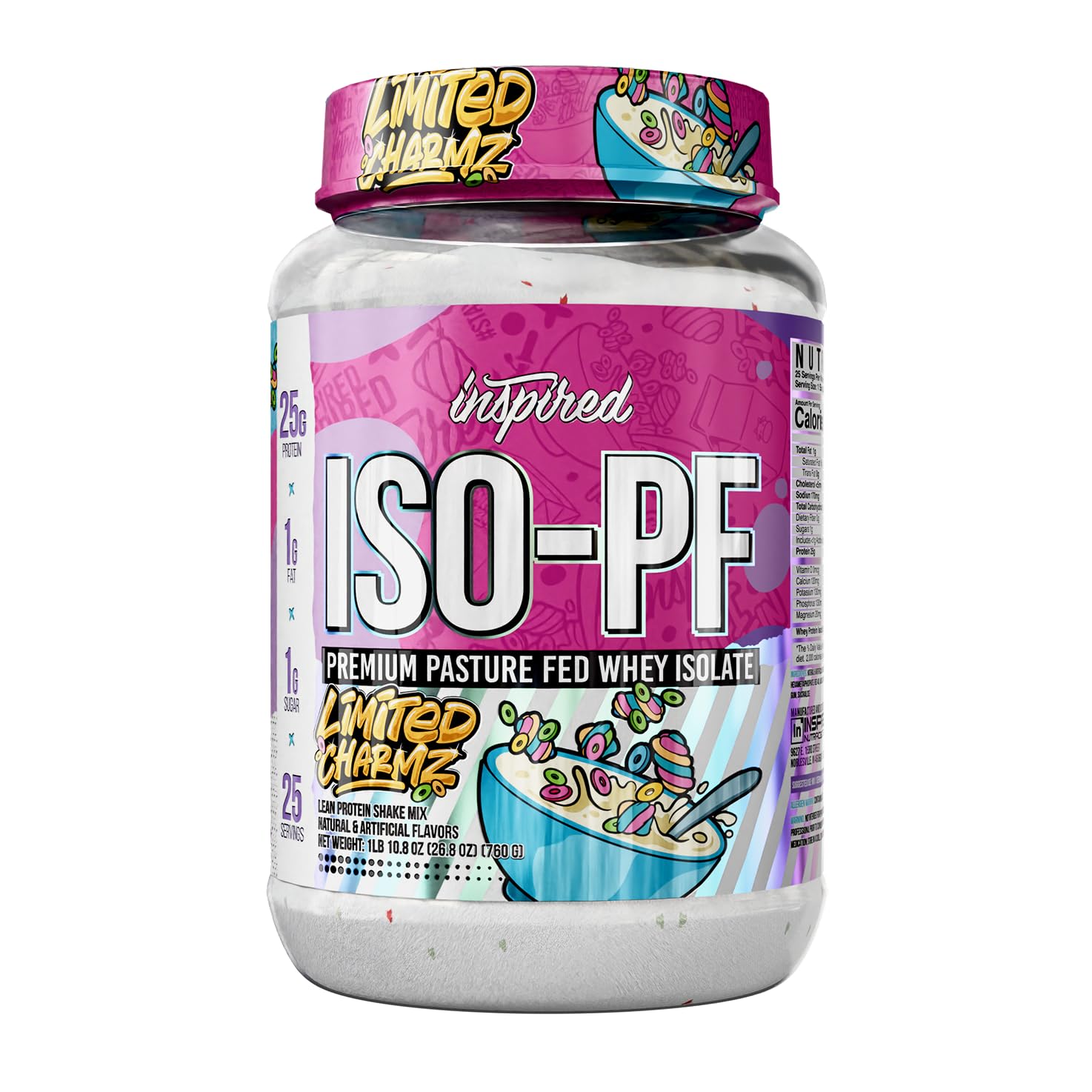 "Inspired ISO-PF: Premium Pasture-Fed Whey Isolate The Difference in Source Not all whey protein is created equal. While many standard proteins are derived from factory-farmed, grain-fed cattle, Inspired ISO-PF utilizes whey from pasture-fed cows. This commitment to sourcing ensures a cleaner, more natural raw ingredient that serves as the foundation for a superior protein powder. Advanced Filtration for Digestion We prioritize digestibility by using a cold-processed Whey Protein Isolate (WPI). Unlike Whey Concentrate, which often retains higher levels of lactose and fat, our isolation process filters these out. The result is a powder that is gentle on the stomach and significantly reduces the risk of bloating or gastric distress, making it suitable for those with dairy sensitivities. Product Highlights: Protein Content: 25g of complete protein per serving. Dietary Compatibility: Low carb, low sugar, and macro-friendly. Texture: Mixes instantly without grit or clumps. Recommended Use: Mix one scoop with 6-8 oz of water or your preferred beverage immediately after training for recovery, or use as a meal supplement to meet daily protein goals. "