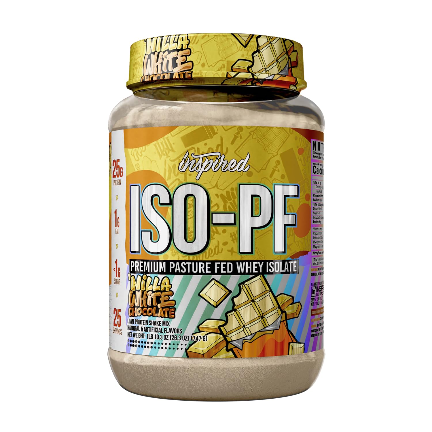 "Inspired ISO-PF: Premium Pasture-Fed Whey Isolate The Difference in Source Not all whey protein is created equal. While many standard proteins are derived from factory-farmed, grain-fed cattle, Inspired ISO-PF utilizes whey from pasture-fed cows. This commitment to sourcing ensures a cleaner, more natural raw ingredient that serves as the foundation for a superior protein powder. Advanced Filtration for Digestion We prioritize digestibility by using a cold-processed Whey Protein Isolate (WPI). Unlike Whey Concentrate, which often retains higher levels of lactose and fat, our isolation process filters these out. The result is a powder that is gentle on the stomach and significantly reduces the risk of bloating or gastric distress, making it suitable for those with dairy sensitivities. Product Highlights: Protein Content: 25g of complete protein per serving. Dietary Compatibility: Low carb, low sugar, and macro-friendly. Texture: Mixes instantly without grit or clumps. Recommended Use: Mix one scoop with 6-8 oz of water or your preferred beverage immediately after training for recovery, or use as a meal supplement to meet daily protein goals. "