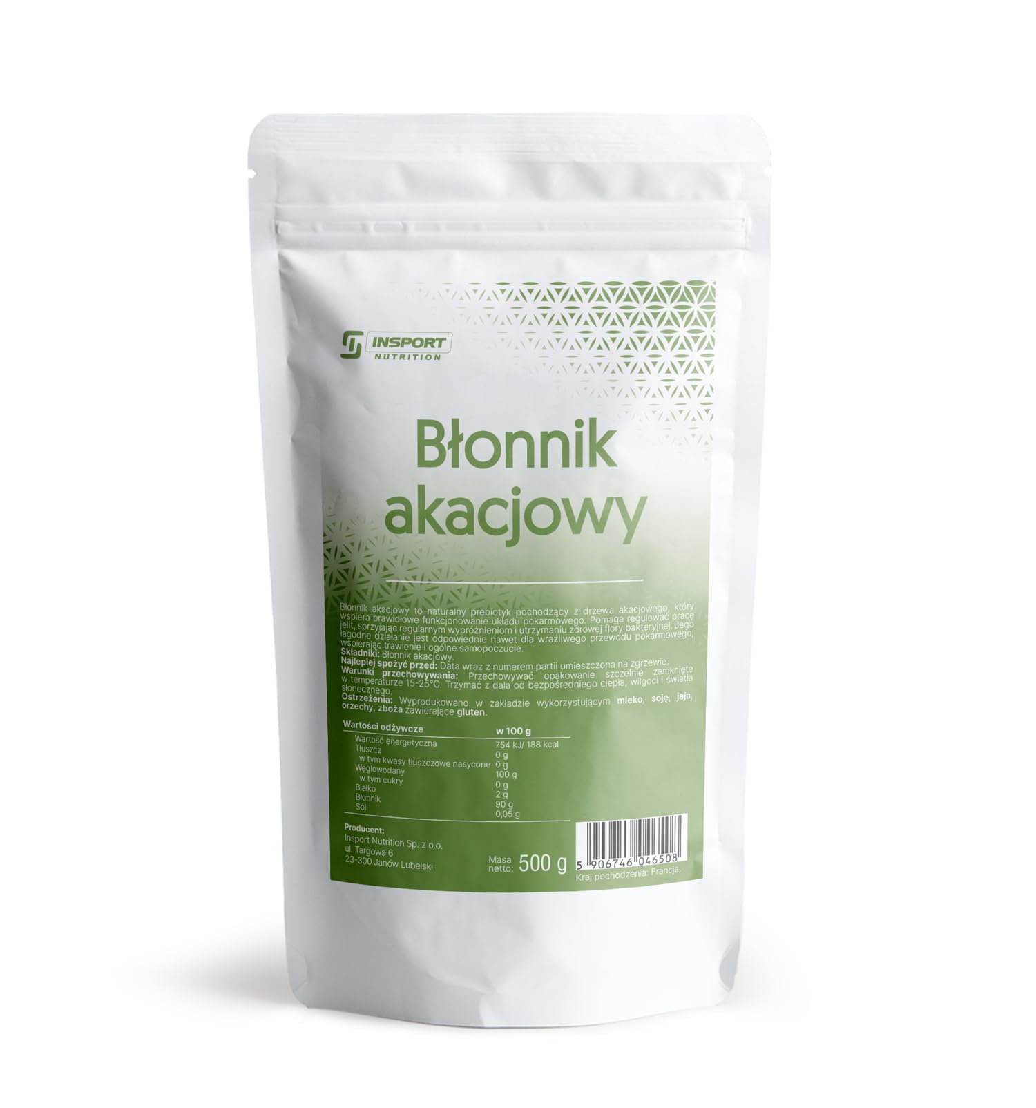 Nutritional information per 100g: Energy: 754 kJ 188 kcal Fat: 0g of which saturates 0g Carbohydrate: 100g of which sugars 0g Protein: 2g Fiber: 90g Salt: 0.05g Ingredients: Acacia fiber Use by: date with batch number on the seal Storage conditions: Keep the package tightly closed at 15-25 C. Protect from direct heat, moisture, and sunlight. INGREDIENTS Acacia fiber SAFETY WARNING Warnings: Manufactured in a facility that uses milk, soy, eggs, tree nuts, and cereals containing gluten. See moreVEGAN AND VEGETARIAN: This product is 100 suitable for vegans and vegetarians, making it an excellent choice for everyone. Immune system support: A healthy gut plays a key role in the functioning of the immune system. By supporting the balance of gut microbiota, acacia fiber helps strengthen the immune system and improve overall health. Acacia fiber is extremely gentle on the stomach and intestines and is therefore also suitable for people with sensitive digestive systems. It does not cause bloating, gas, or discomfort and is therefore ideal for people with a sensitive digestive tract. Regular intake of acacia fiber promotes gut health, aids digestion, helps maintain a healthy weight, and contributes to improving the balance of bacteria in the gut. Insport Nutrition's Acacia Fiber is a natural food supplement that supports healthy digestive function and improves overall well-being. This fiber is gentle on the digestive system and perfectly soluble in water, making it an ideal choice for anyone seeking a healthy diet.Fibre d'acacia - 90 de fibres - 500 g Doypack - Perte de poids - Digestion - Végétalien - Sans gluten - Emballage anti-fuite avec fermeture éclair - INSPORT NutritionDESCRIPTION DU PRODUIT DESCRIPTION DU PRODUIT Informations nutritionnelles pour 100 g : Valeur énergétique : 754 kJ 188 kcal. Graisse : 0 g. dont acides gras saturés 0 g. Glucides : 100 g. dont sucre 0 g. Protéines : 2 g. Fibres : 90 g. Sel 0,05 g. Ingrédients : fibre d'acacia. A consommer avant : date avec le numéro de lot sur le sceau. Conditions de conservation : conserver l'emballage bien fermé à 15-25 C. Protéger de la chaleur directe, de l'humidité et de la lumière du soleil. INGRÉDIENTS Fibre d'acacia. AVERTISSEMENT DE SÉCURITÉ Avertissements : fabriqué dans une usine qui utilise du lait, du soja, des œufs, des noix et des céréales contenant du gluten. Voir plusVEGAN ET VÉGÉTARIEN : ce produit est 100 adapté aux végétaliens et aux végétariens, ce qui en fait un excellent choix pour tous. Soutien du système immunitaire : un intestin sain joue un rôle clé dans le fonctionnement du système immunitaire. En soutenant l'équilibre de la microflore intestinale, la fibre d'acacia contribue à renforcer le système immunitaire et à améliorer la santé globale. Les fibres d'acacia sont extrêmement douces pour l'estomac et les intestins et conviennent donc également aux personnes ayant un système digestif sensible. Elles ne provoquent pas de ballonnements, de ballonnements ou d'inconfort et sont donc idéales pour les personnes ayant un tube digestif sensible. L'apport régulier de fibres d'acacia favorise la santé intestinale, favorise la digestion et aide à maintenir un poids sain, et contribue à améliorer l'équilibre de la flore bactérienne dans l'intestin. Acacia Fibre d'Insport Nutrition est un complément alimentaire naturel qui soutient une fonction digestive saine et améliore le bien-être général. Cette fibre est douce pour le système digestif et parfaitement soluble dans l'eau, ce qui en fait un choix idéal pour tous ceux qui recherchent une alimentation saine.
