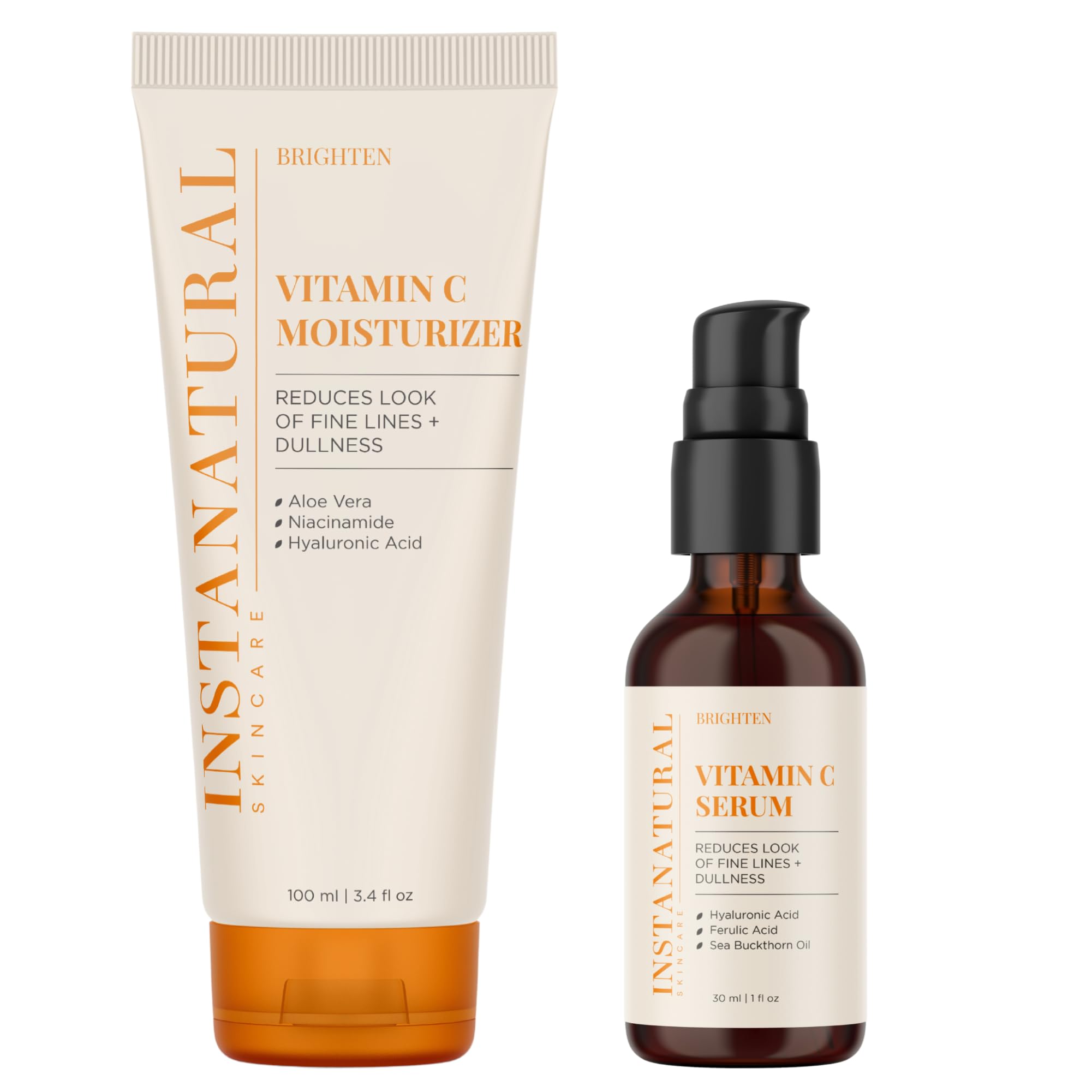 InstaNatural Vitamin C Moisturizer and Serum Kit Brightens and Reduces Signs of Aging Fine Lines and Wrinkles with Hyaluronic Acid and Botanical Extracts