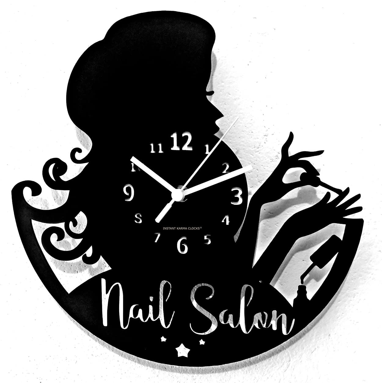 Instant Karma Clocks Orologio da Parete Bellezza Estetista Negozio Manicure Smalto Unghie Maniküre ➤ Wanduhr Nail Make Up Schönheit Salon Geschäft Nagellack, Holz, Schwarz, Modell 2 Modell 02 Schwarz
