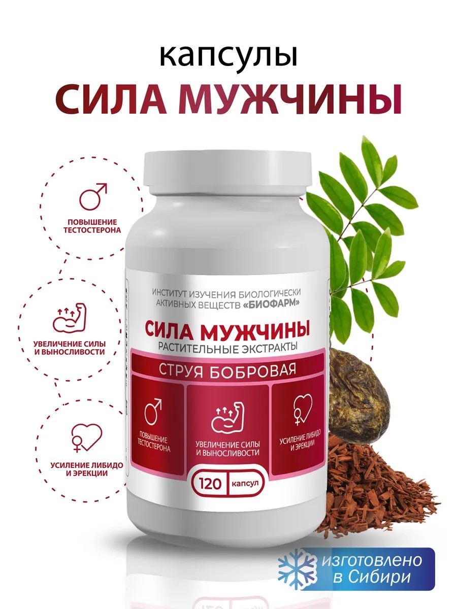 Бобровая струя издавна известна своими уникальными свойствами для мужского здоровья и долголетия. Натуральный комплекс на основе экстрактов лекарственных растений Алтая позволит решить многие проблемы. Препарат применяется для профилактики простатита и воспалений мочеполовых путей. Концентрат способствует восстановлению потенции и улучшению сперматогенеза. Препарат нормализует и стабилизирует работу сердечно-сосудистой, иммунной систем, а также желудочно-кишечного тракта. Секрет бобра в капсулах - это еще и природный антибиотик, адаптоген. Он полезен при всех формах полового бессилия, пробуждает защитные функции организма, увеличивает работоспособность. Омолаживает и очищает, обладает регенерирующим и восстанавливающим действием. Расширяет кровеносные сосуды члена и ускоряет приток крови к органам малого таза. В результате этого Вам обеспечена твердая и длительная эрекция, время сексуального акта продлиться. Положительно влияет на состав спермы и предотвращает бесплодие. Сбор устраняет застои жидкости в простате, усиливает кровообращение во всей репродуктивной системе. Повышает уровень гормона роста соматотропина, основного вещества, которое отвечает за белковый синтез в мышечной ткани. Оказывает помощь в выработке тестостерона. Помогает спортсменам тренироваться дольше и интенсивнее, сжигать жир. Рекомендуется использовать как вспомогательное средство. Желаем Вам крепкого сибирского здоровья и хорошего настроения!