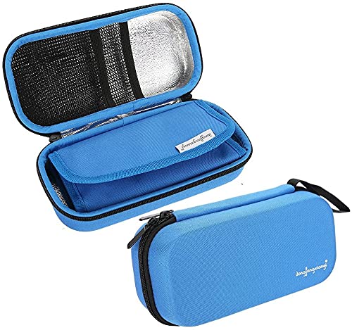 CONVENIENT: Double zipper design, which is convenient and durable.Folding padded insert has elastic secured loops,storing pouches and business card pocket provided for identification, fits multiple insulin pens ,plenty of room for all diabetic supplies and keep them cool and safe when traveling,great for put in purse and car. EASY TO CARRY: Double zipper design, which is convenient and durable. For diabetes, it is of small and portable design, you can carry it anywhere. Made of waterproof Oxford cloth, which is durable. Perfect protection for your products. INNER DESIGN: There contains temperature display strip so that you can view readings better. 2 mesh pockets can be used for holding other stuff unimportant, 2 small pockets in the middle of liner can hold insulin while 2 side pockets are meant to hold ice packs. GOOD INSULATION: Interior food grade insulation aluminum fabric which allows the confrontation, good heat /cold resistance and insulation effect, cooling stability,keep warm things warm or cold item cold.Light weight. Easily fits into a luggage/backpack without taking up a whole lot of space. CHARACTERISTIC: Shake proof, anti-wear and scratch-resistant,portable insulation, cold case for traveling or household, you can maintain the temperature of 2-8 degrees for 8-10 hours, built-in temperature display, it is easily to master real-time temperature.