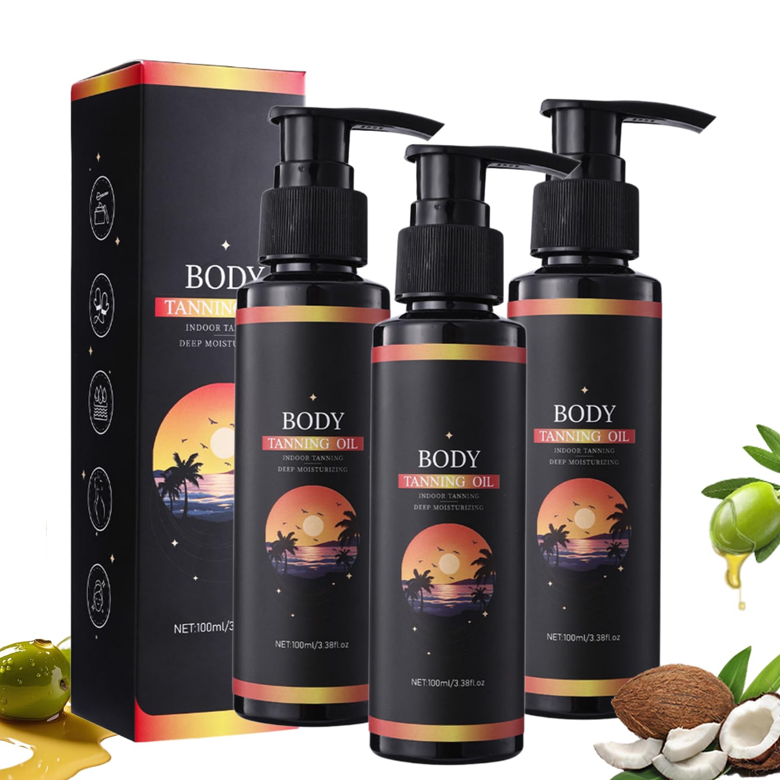 Intense Tanning Oil for Outdoor Sun | Water-Resistant Bronzing Accelerator with Coconut & Olive Oil | Vitamins A&E for Hydration | Streak-Free Non-Greasy Formula for Sunbeds & Beach (3pc)