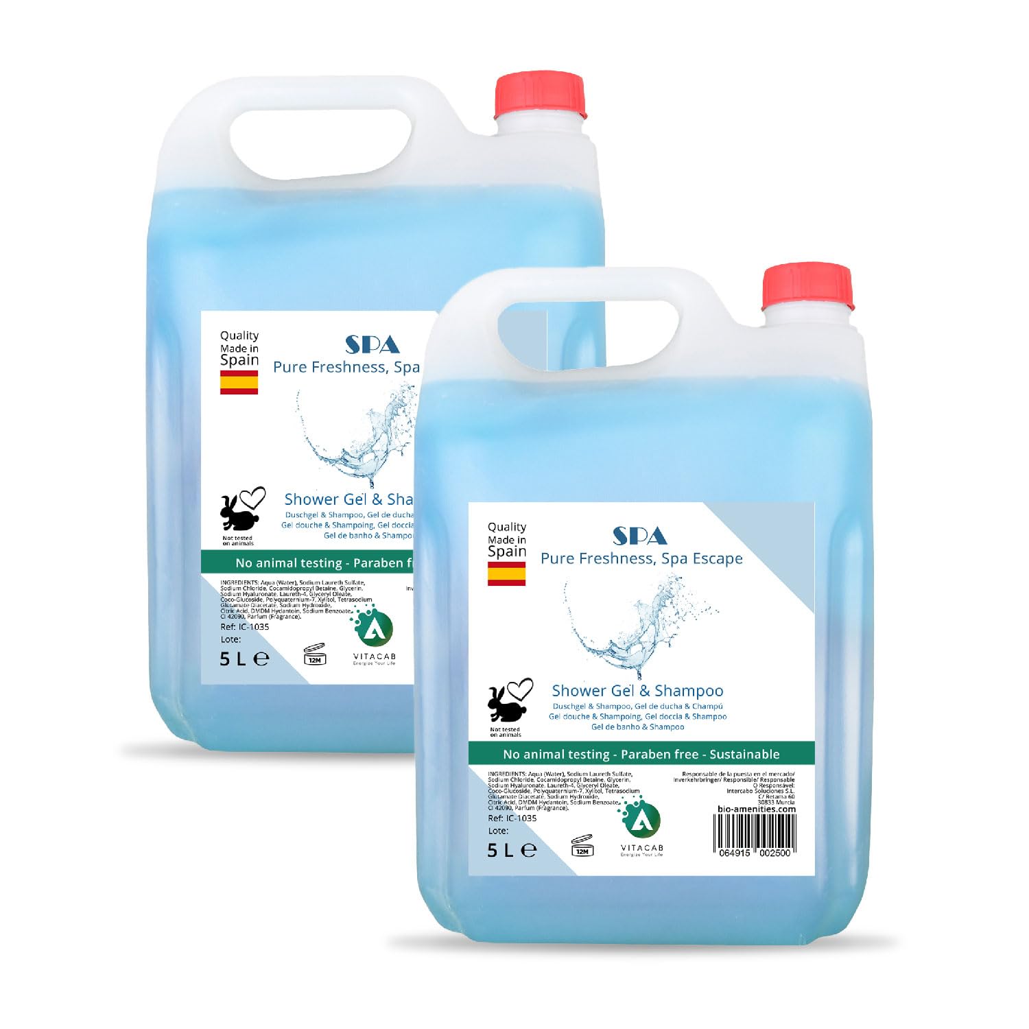 Vitacab 2-in-1 Shower Gel Shampoo SPA offers the perfect balance between cleaning and care. Designed for daily use, the product combines the freshness of a shower gel with the caring power of a shampoo – ideal for a refreshing and efficient routine. Main benefits: Multifunctional: cleanses both skin and hair effectively, with a single product. Moisturizing: the gentle formula with moisturizing ingredients prevents dehydration and keeps the skin supple. Fresh SPA scent: provides a relaxing moment in the shower with a subtle aroma that lasts a long time. Economical size: 2 5 liter water bottles for long-term use, ideal for families or regular users. Sustainable packaging: recyclable bottles that contribute to an environmentally conscious care routine. Use: Apply a small amount to damp skin or hair, massage gently and rinse well. Suitable for daily use thanks to the mild pH value. Vitacab stands for care, freshness and sustainability. This 2-in-1 SPA shower gel shampoo provides a pleasant experience every day, focusing on comfort and softness. Treat yourself to a moment of relaxation – choose Vitacab and experience the difference. INGREDIENTS Aqua, Sodium Laureth Sulfate, Cocamidopropyl Betaine, Glycerin, Sodium Chloride, Parfum, Citric Acid, Sodium Benzoate, Potassium Sorbate, Linalool. SAFETY WARNING All for external use. Avoid contact with the eyes See more? Gentle on skin and hair – The balanced pH formula is suitable for regular use and provides a clean, fresh and cared for feeling. ? Value pack 2 x 5L – Large format that lasts a long time, produces less packaging waste and is ideal for daily use. Fresh SPA scent – The subtle and relaxing scent creates a pleasant wellness experience that refreshes body and mind. Moisturizing formula - With caring ingredients that help retain moisture and keep both skin and hair soft, supple and healthy. Complete care in one product – This 2-in-1 shower gel and shampoo thoroughly cleanses skin and hair, saves time and provides gentle, fresh care with every use.2-in-1 Douchegel Shampoo SPA – Set van 2 x 5L – Hydraterende formule met frisse geur – Milde reiniging voor huid en haar – Grootformaat voor langdurig dagelijks gebruik Vitacab 2-in-1 Douchegel Shampoo SPA biedt de perfecte balans tussen reiniging en verzorging. Ontworpen voor dagelijks gebruik, combineert het product de frisheid van een douchegel met de verzorgende kracht van een shampoo – ideaal voor een verfrissende en efficiënte routine. Belangrijkste voordelen: Multifunctioneel: reinigt zowel huid als haar effectief, met één enkel product. Hydraterend: de zachte formule met hydraterende ingrediënten voorkomt uitdroging en houdt de huid soepel. Frisse SPA-geur: zorgt voor een ontspannend moment onder de douche met een subtiel aroma dat lang aanhoudt. Economisch formaat: 2 bidons van 5 liter voor langdurig gebruik, ideaal voor gezinnen of regelmatige gebruikers. Duurzaam verpakt: recyclebare flessen die bijdragen aan een milieubewuste verzorgingsroutine. Gebruik: Breng een kleine hoeveelheid aan op een vochtige huid of haar, masseer zachtjes en spoel goed af. Geschikt voor dagelijks gebruik dankzij de milde pH-waarde. Vitacab staat voor verzorging, frisheid en duurzaamheid. Deze 2-in-1 SPA douchegel shampoo zorgt elke dag voor een aangename ervaring, waarbij comfort en zachtheid centraal staan. Gun uzelf een moment van ontspanning – kies voor Vitacab en ervaar het verschil. INGREDIËNTEN Aqua, Sodium Laureth Sulfate, Cocamidopropyl Betaine, Glycerin, Sodium Chloride, Parfum, Citric Acid, Sodium Benzoate, Potassium Sorbate, Linalool. VEILIGHEIDSWAARSCHUWING Allen voor extern gobruik. Vermijd contact meet de ogen Meer bekijken? Zacht voor huid en haar – De evenwichtige pH-formule is geschikt voor regelmatig gebruik en zorgt voor een schoon, fris en verzorgd gevoel. ? Voordeelverpakking 2 x 5L – Grootformaat dat lang meegaat, minder verpakkingsafval oplevert en ideaal is voor dagelijks gebruik. Frisse SPA-geur – De subtiele en ontspannende geur creëert een aangename wellness-ervaring die lichaam en geest verfrist. Hydraterende formule – Met verzorgende bestanddelen die helpen vocht vast te houden en zowel huid als haar zacht, soepel en gezond houden. Complete verzorging in één product – Deze 2-in-1 douchegel en shampoo reinigt huid en haar grondig, bespaart tijd en biedt een zachte, frisse verzorging bij elk gebruik.