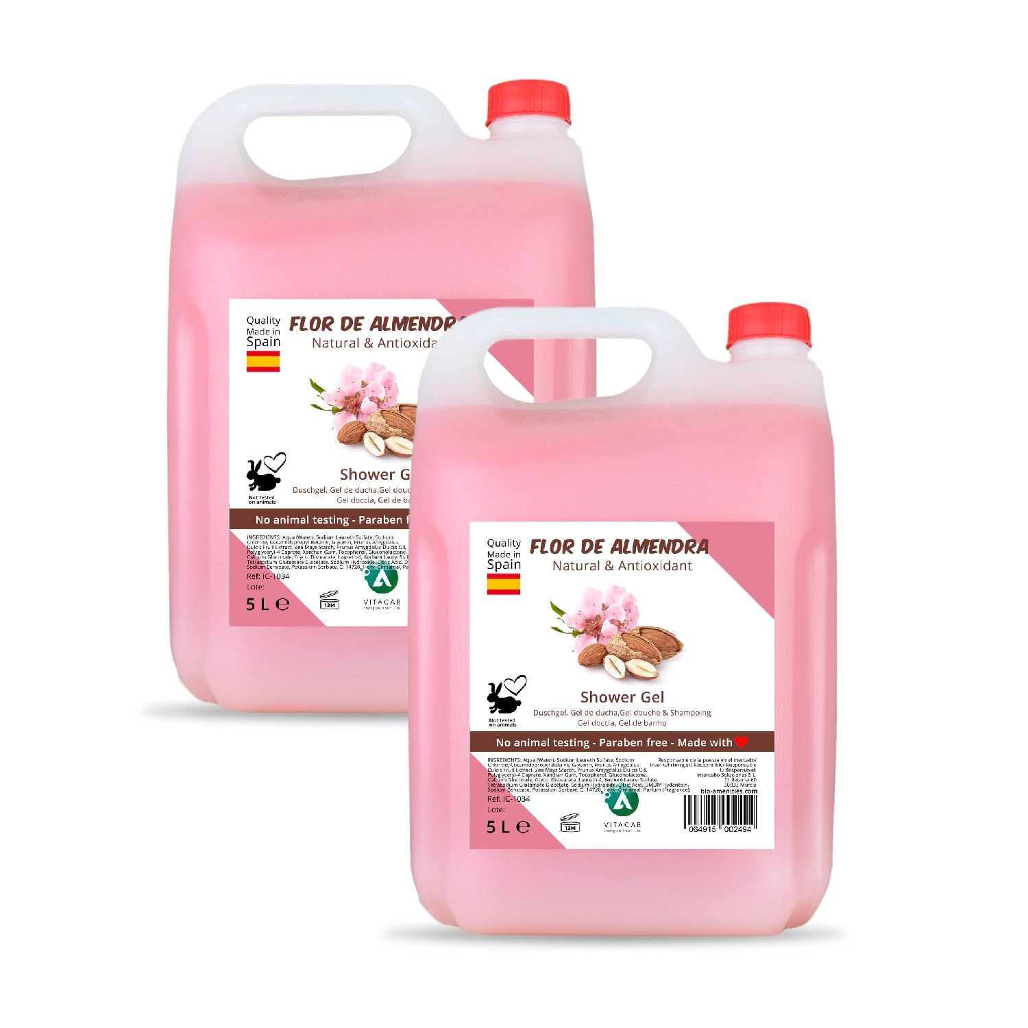 Discover the Vitacab Shower Gel Almond Blossom – a perfect combination of softness, hydration and a natural scent that refreshes and cares for the skin. This formula is designed to transform your daily shower into a moment of relaxation and well-being. Main benefits: Mild cleansing: removes impurities without drying out the skin. Moisturizing effect: thanks to almond oil and glycerine, the skin remains supple and soft. Seductive scent: the delicate almond blossom aroma provides a long-lasting feeling of freshness. Bulk packaging: 2 bottles of 5L offer a sustainable solution with less packaging waste. Versatile use: suitable for daily use by the whole family. Instructions for use: Apply a small amount of shower gel to a damp sponge or directly on the skin. Massage gently and rinse with warm water. Avoid contact with the eyes. Vitacab stands for quality, softness and durability. Our products have been carefully developed to naturally clean and care for your skin. Enjoy silky soft skin every day and a fresh scent that lingers. Start your day with Vitacab – natural softness in the shower. SAFETY WARNING All for external use. Avoid contact with the eyes? Sustainable choice – Vitacab uses recyclable packaging and gentle ingredients that are gentle on both the skin and the environment. Large format 2 x 5L – The economical packaging ensures long-term use, less plastic consumption and a constant stock at home. Wonderful natural scent – Enjoy the subtle and relaxing scent of almond blossom that brings freshness and well-being all day long. Moisturizing formula – Enriched with almond oil and glycerin to protect the skin from dehydration and maintain its natural moisture levels. Gentle care for the skin – Vitacab shower gel with almond blossom extract gently cleanses and nourishes the skin, leaving it feeling supple and comfortable after every shower.Douchegel Amandelbloesem – Set van 2 x 5L – Hydraterende en zachte verzorging – Natuurlijke amandelgeur – Milde reiniging – Langdurige frisheid – Grootverpakking voor dagelijks gebruik Ontdek de Vitacab Douchegel Amandelbloesem – een perfecte combinatie van zachtheid, hydratatie en een natuurlijke geur die de huid verfrist en verzorgt. Deze formule is ontworpen om uw dagelijkse douche om te toveren tot een moment van ontspanning en welzijn. Belangrijkste voordelen: Milde reiniging: verwijdert onzuiverheden zonder de huid uit te drogen. Hydraterend effect: dankzij amandelolie en glycerine blijft de huid soepel en zacht. Verleidelijke geur: de delicate amandelbloesemaroma zorgt voor een langdurig fris gevoel. Grootverpakking: 2 flessen van 5L bieden een duurzame oplossing met minder verpakkingsafval. Veelzijdig gebruik: geschikt voor dagelijks gebruik door het hele gezin. Gebruiksaanwijzing: Breng een kleine hoeveelheid douchegel aan op een vochtige spons of direct op de huid. Masseer zachtjes en spoel af met warm water. Vermijd contact met de ogen. Vitacab staat voor kwaliteit, zachtheid en duurzaamheid. Onze producten zijn zorgvuldig ontwikkeld om uw huid op natuurlijke wijze te reinigen en te verzorgen. Geniet elke dag van een zijdezachte huid en een frisse geur die blijft hangen. Begin uw dag met Vitacab – natuurlijke zachtheid onder de douche. VEILIGHEIDSWAARSCHUWING Allen voor extern gebruik. Vermijd contact met de ogen? Duurzame keuze – Vitacab gebruikt recyclebare verpakkingen en zachte ingrediënten die mild zijn voor zowel de huid als het milieu. Grootformaat 2 x 5L – De economische verpakking zorgt voor langdurig gebruik, minder plasticverbruik en een constante voorraad in huis. Heerlijke natuurlijke geur – Geniet van de subtiele en ontspannende geur van amandelbloesem die frisheid en welzijn brengt, de hele dag lang. Hydraterende formule – Verrijkt met amandelolie en glycerine om de huid te beschermen tegen uitdroging en het natuurlijke vochtgehalte te behouden. Zachte verzorging voor de huid – Vitacab douchegel met amandelbloesemextract reinigt zacht en voedt de huid, waardoor ze soepel en comfortabel aanvoelt na elke douche.