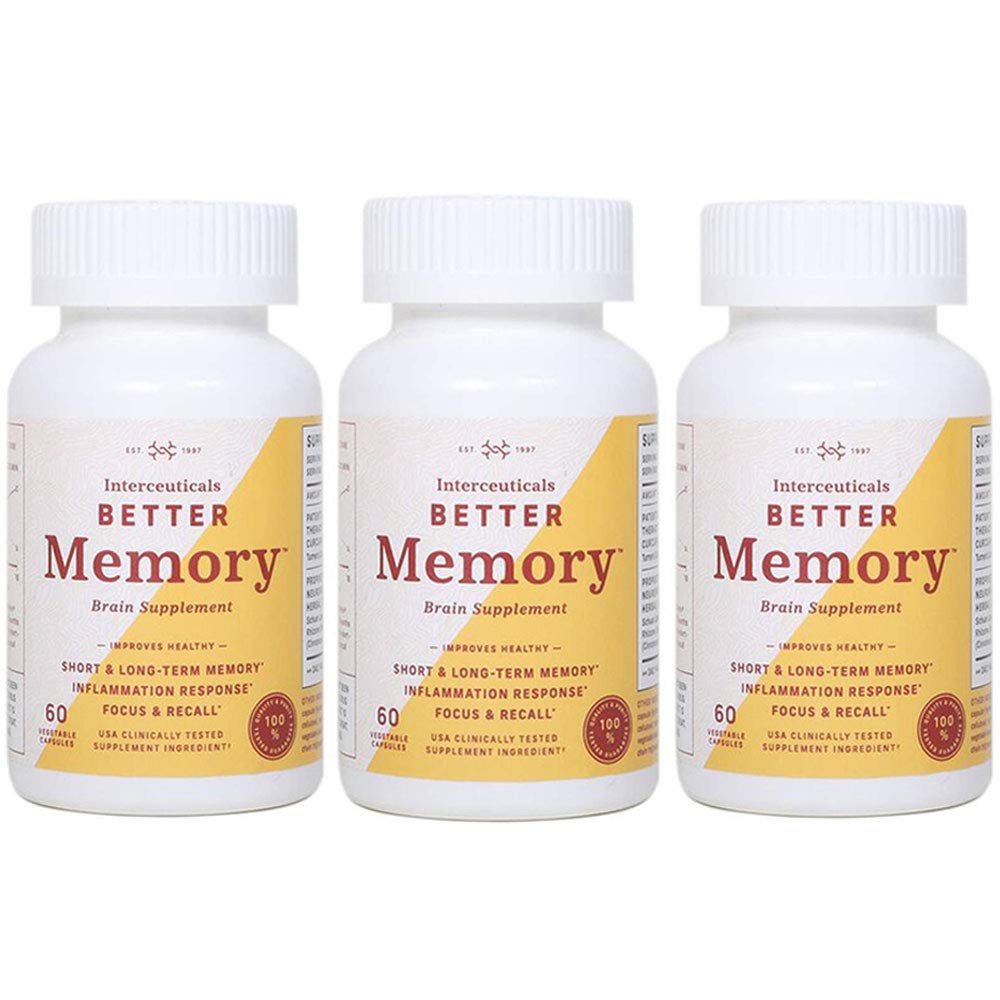 Interceuticals Better Memory - Theracurmin Curcumin 90 mg - Clinically Proven Dose Improves Focus Recall Memory and Mood* - High Absorption Turmeric Extract* (3 Bottles)