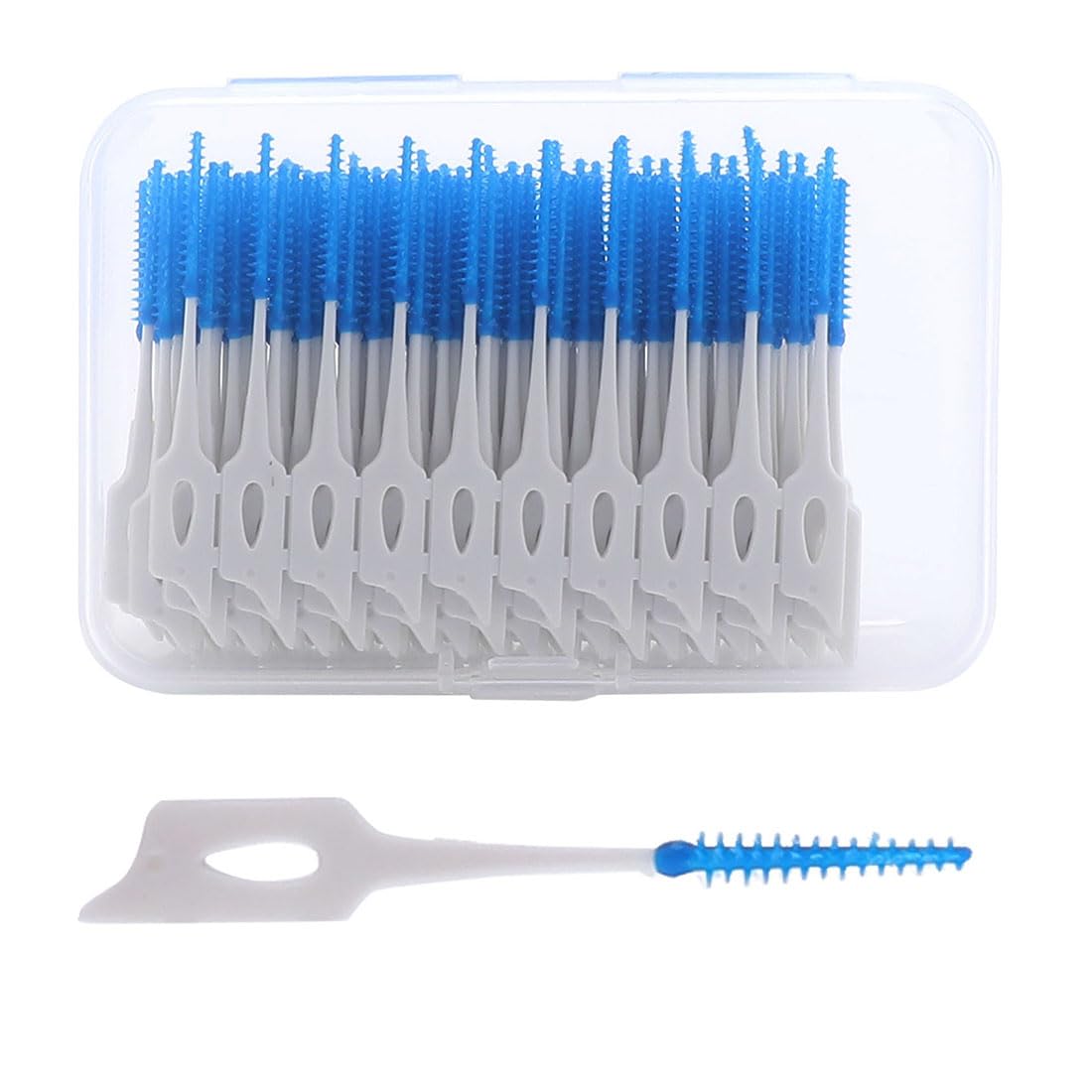 InterentalbrushAn end of the toothbrush is made of soft silicone, which can be easily bent, the curved design makes it easier for you to clean your mouth.The interdental cleaning brush has a soft silicone head design that can gently remove the leftovers and massage the gums.It can easily get into narrow gap areas for cleaning.Small and practical, equipped with a transparent storage box for easy storage, which can be inserted into a bag or bag, which makes it very easy to wear when you go out.Disposable design, disposed of after each use, helps to maintain cleanliness.The package contains 220 blue interdental brushes and a storage box, enough for daily use and replacement for you and your family.InterdentalbürsteEin Ende der Zahnbürste besteht aus weichem Silikon, das leicht gebogen werden kann, das geschwungene Design erleichtert Ihnen die Reinigung Ihres Mundes. Die Interdentalreinigungsbürste hat ein weiches Silikonkopf-Design, das Essensreste sanft entfernen und das Zahnfleisch massieren kann. Es kann leicht in enge Spaltbereiche zur Reinigung gelangen. Klein und praktisch, ausgestattet mit einer transparenten Aufbewahrungsbox zur einfachen Aufbewahrung, die in eine Tasche oder Tasche gesteckt werden kann, wodurch sie beim Ausgehen sehr bequem zu tragen ist. Einweg-Design, nach jedem Gebrauch entsorgt, hilft, die Sauberkeit zu erhalten. Das Paket enthält 220 blaue Interdentalbürsten und eine Aufbewahrungsbox, genug für den täglichen Gebrauch und Ersatz für Sie und Ihre Familie.Interdentalbürsten, blau, Dual-Use Dental Floss Sticks, Zahnbürsten, tragbar, Zahnspaltbürste, Silikonseide für Mundreinigung (eine Box mit 200 Stück)