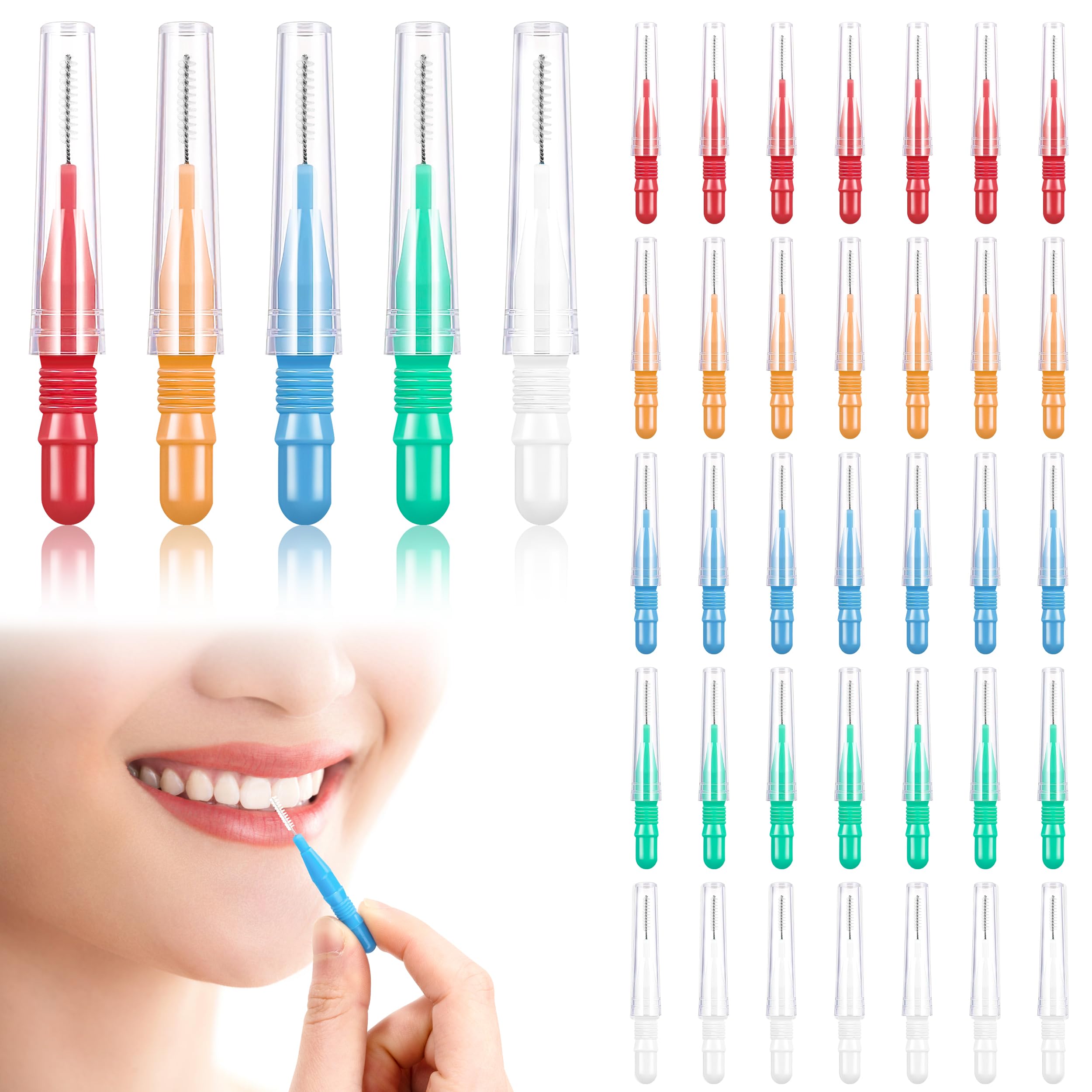 Interental brushes 40 pieces 5 color set intermediate room brushes toothbrush with coating for cleaning narrow interdental teeth