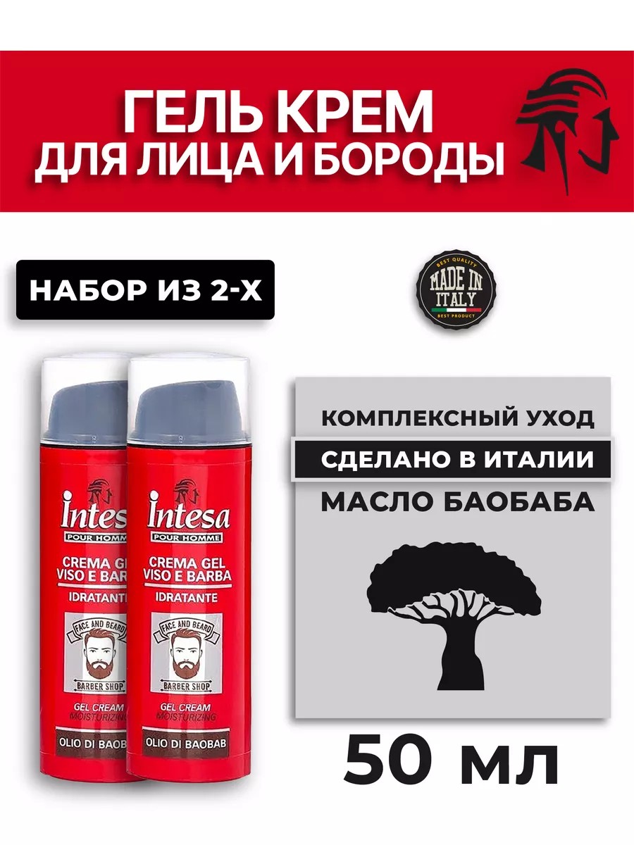 | Комплектация | Увлажняющий гель-крем для лица и бороды с маслом баобаба Intesa 50 мл - 2 шт |