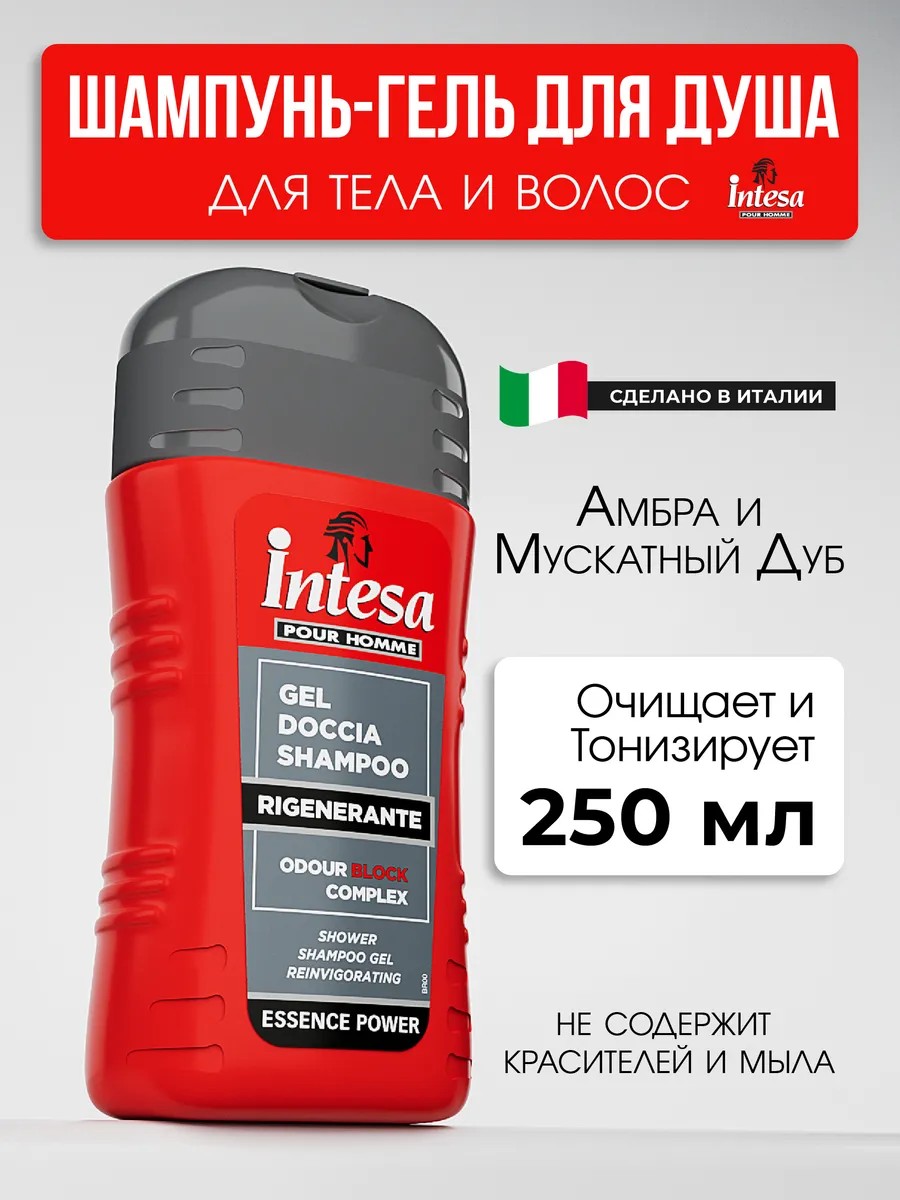 Особенностью шампуня-геля для мужчин INTESA является специальный блокирующий комплекс с тройной технологией, который эффективно нейтрализует неприятные запахи. Невероятно интенсивный аромат с нотами амбры и дубового мускуса подарит Вам длительное приятное ощущение свежести.