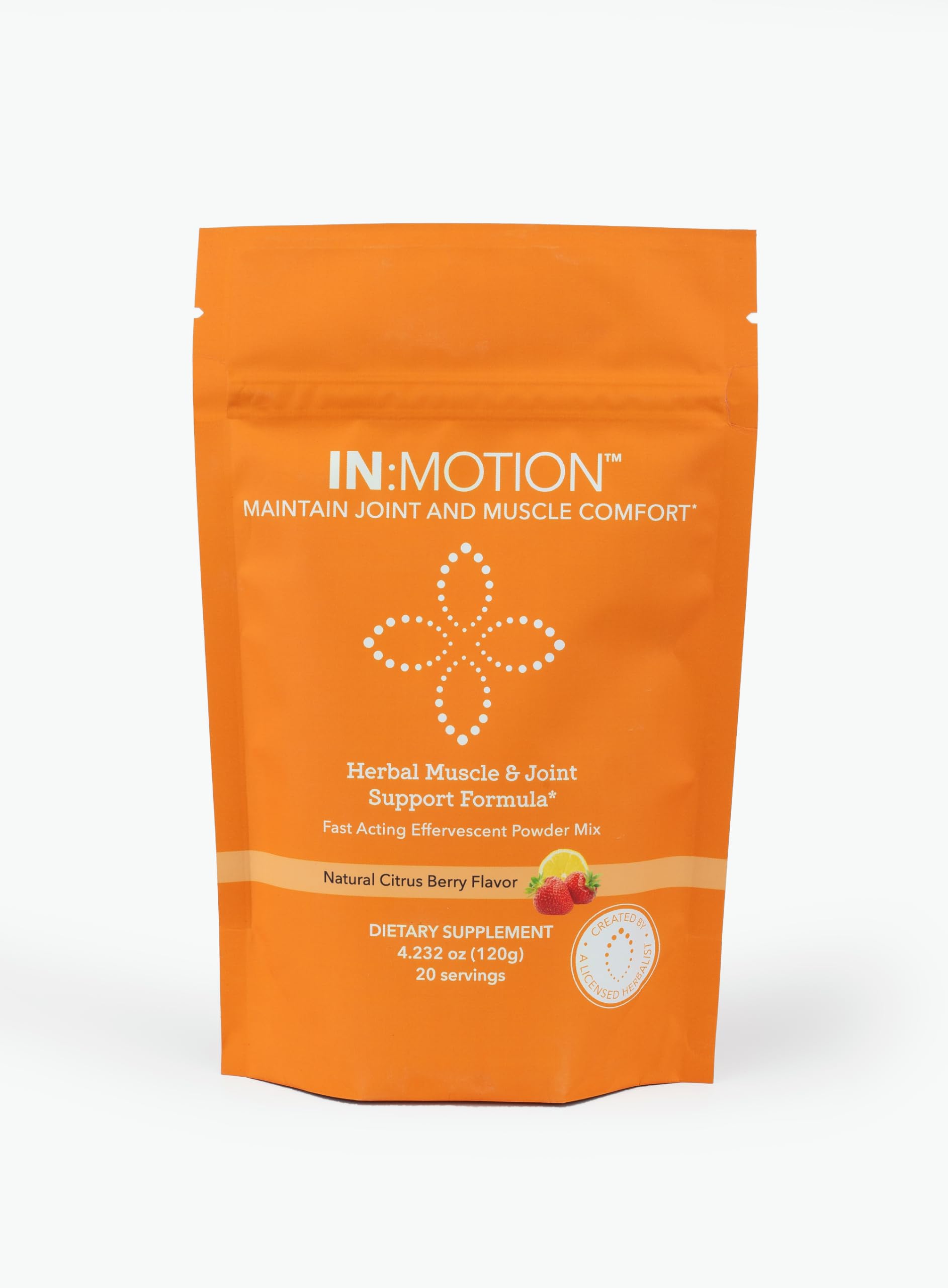 INTotalWellness in:Motion Natural Herbal Muscle and Joint Comfort Formula 20 Serving Pouch Citrus Berry Flavor Corydalis Tumeric Ginger + 9 More Adaptogens & Herbs Clinically Proven Ingredients