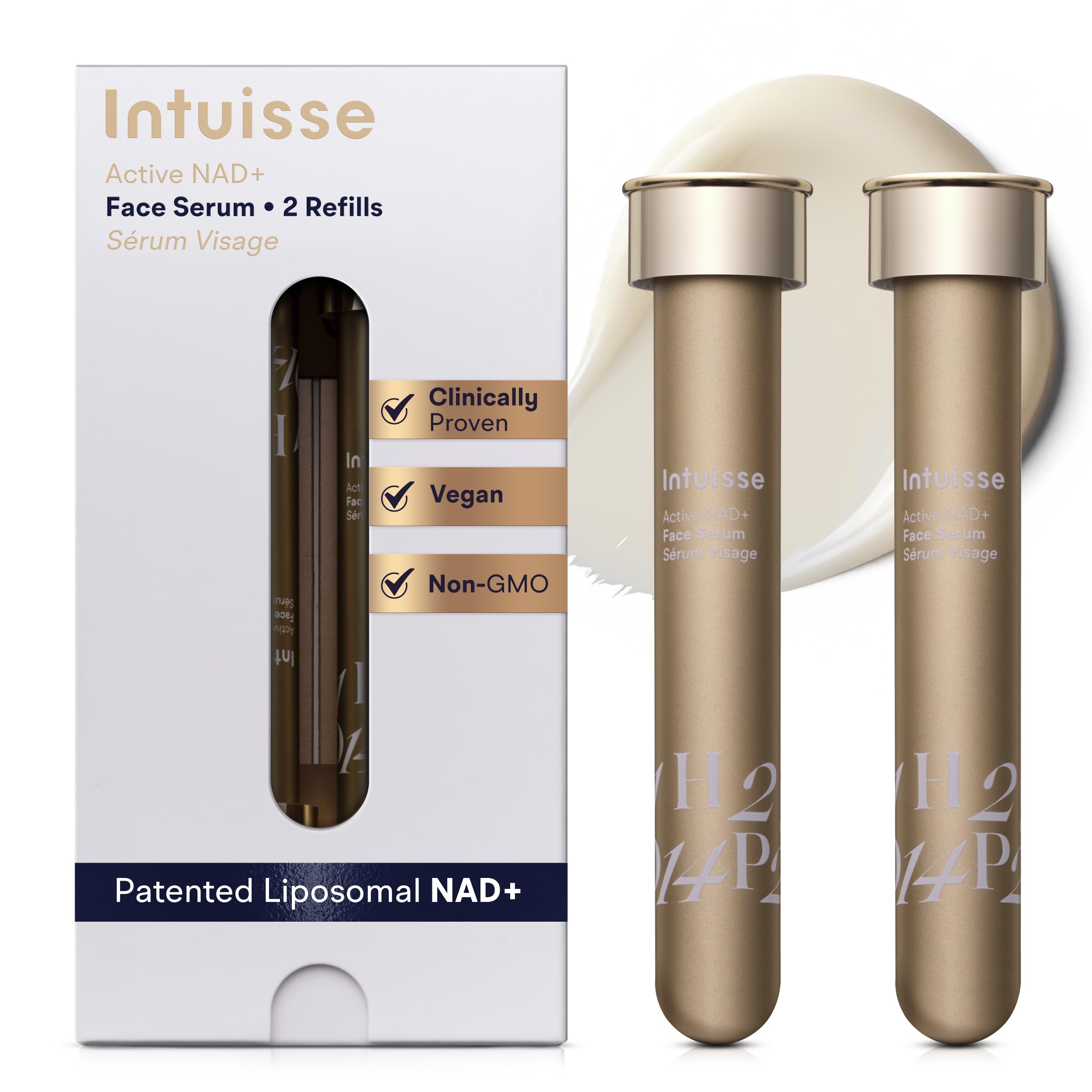 Intuisse Pharma-Grade NAD+ Face Serum Advanced Anti-aging Formula for Collagen Boost & Uneven Skin Tone Powerful As Retinol Patented Swiss Technology 2 x 0.34 Fl Oz Refills