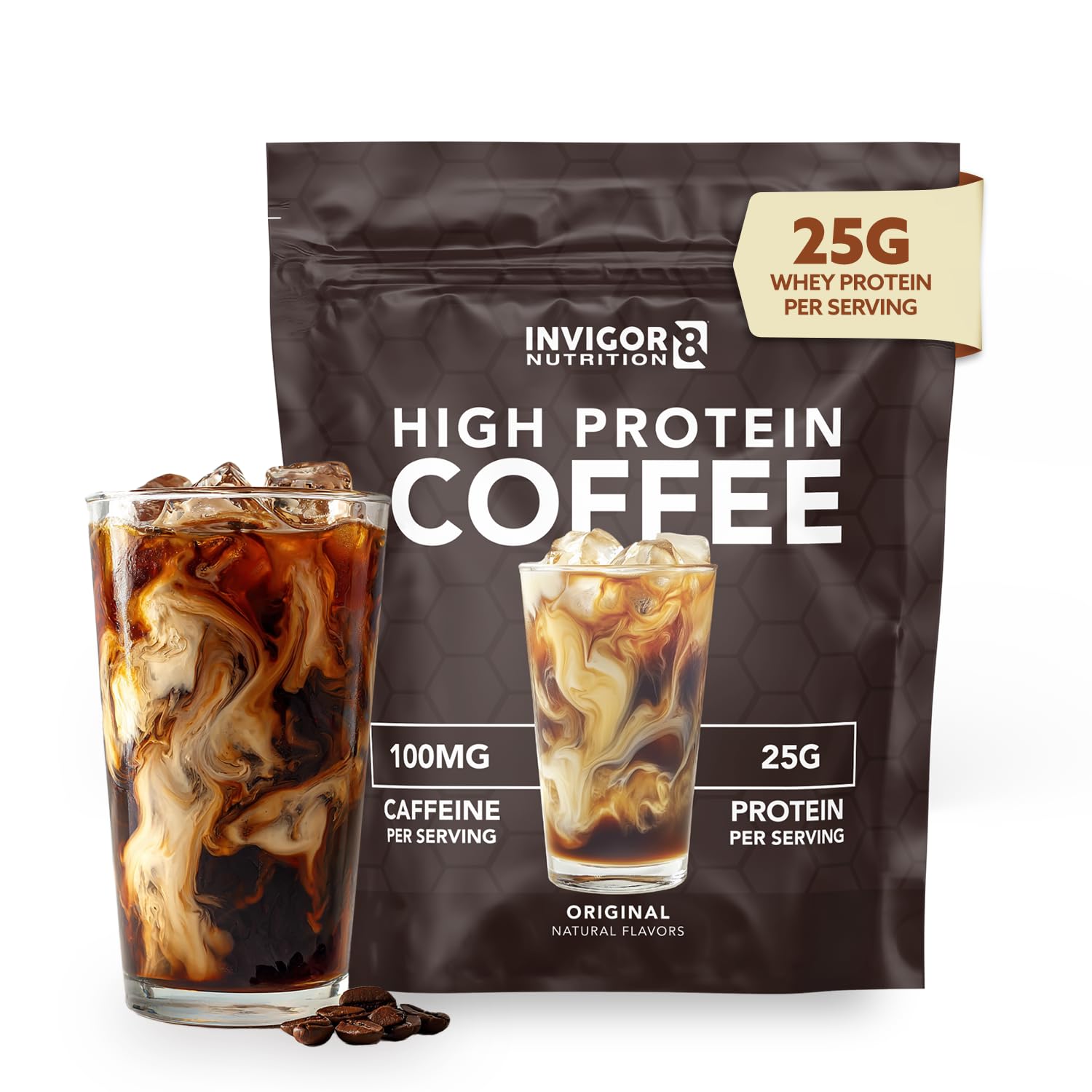 INVIGOR8 High Protein Coffee Powder 25 Grams Whey Isolate100mg Natural Green Tea Caffeine | 0 Added Sugar Keto Gluten Free 99.9% Lactose Free | Hot or Iced15 Serving 15 Servings (17 OZ Original) Original 1.07 Pound (Pack o