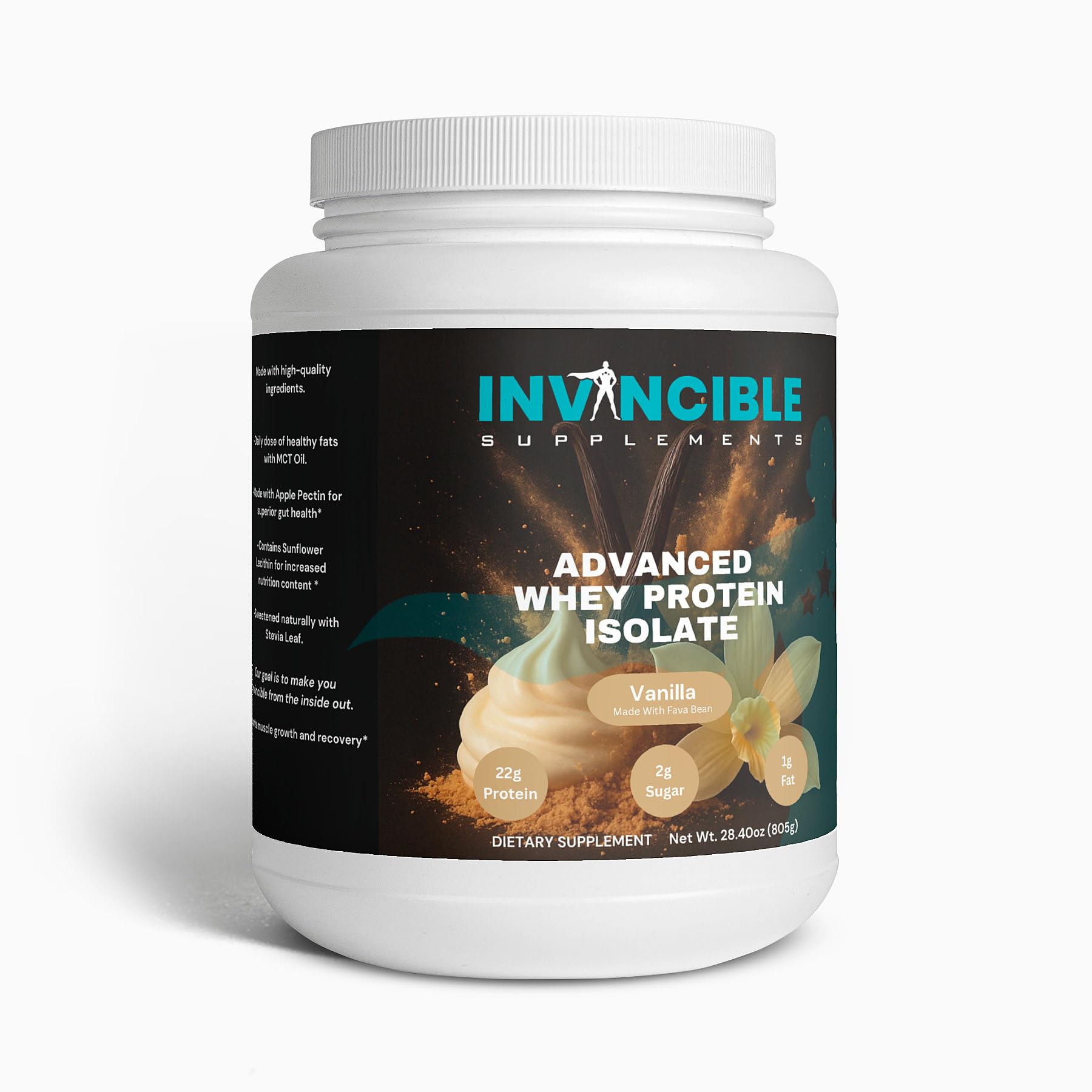 Invincible Supplements Advanced 100 Whey Protein Isolate offers a rich, decadent vanilla flavor, crafted to deliver high-quality protein to support muscle growth and recovery.