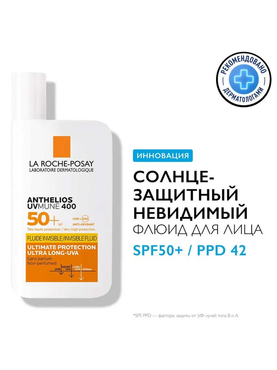 Солнцезащитная жидкость SPF 50+ / PPD 42 — это первый фильтр, предотвращающий воздействие ультрадлинных UVA-лучей. Активный компонент — инновационный УФ-фильтр Mexoryl 400, который защищает от ультрадлинных лучей UVA (380 — 400 нм). Они невидимы, повреждают глубинные клеточные слои кожи и составляют 30% УФ-лучей, воздействующих на кожу.